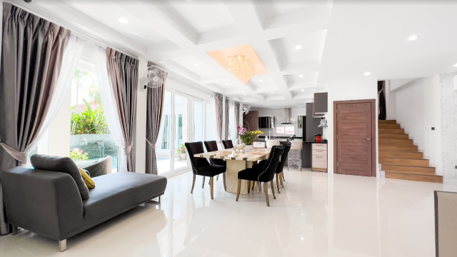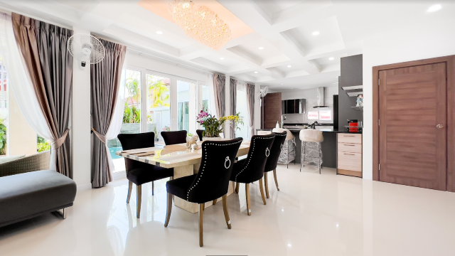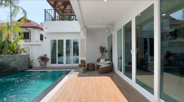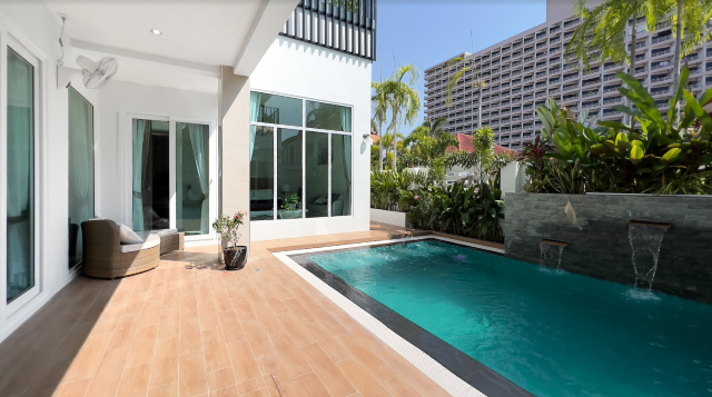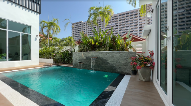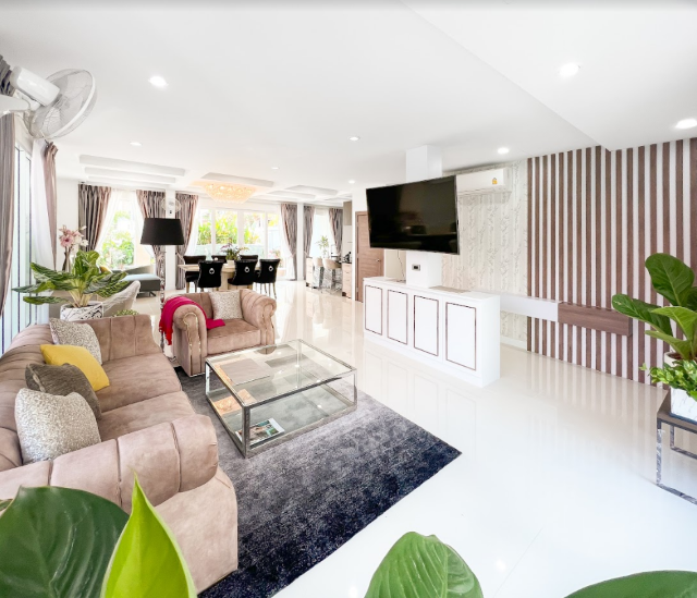 Absolutely stunning 2 storey + rooftop entertainment deck house with a perfect layout that would fit anyones living style or needs. Ultra modern furniture, decorations, and highest quality finishings , located in a prime location, close to Jomtien Beach, grocery store, baht bus taxi, Walking Street just only 5 minutes away from Central Pattaya.