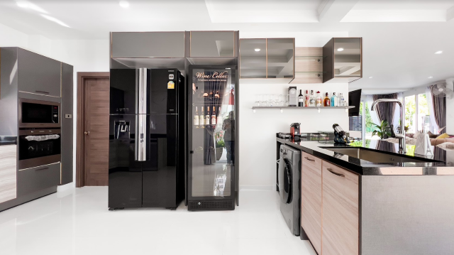– Kitchen appliances include Oven, dish washer, double fridge and full size wine cellar