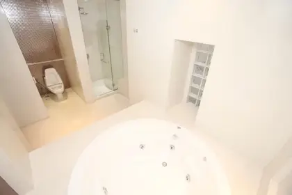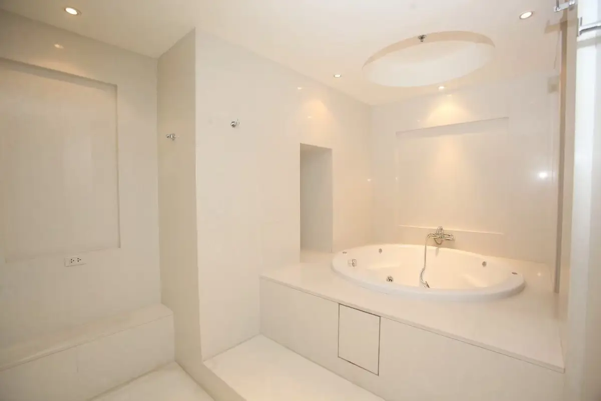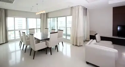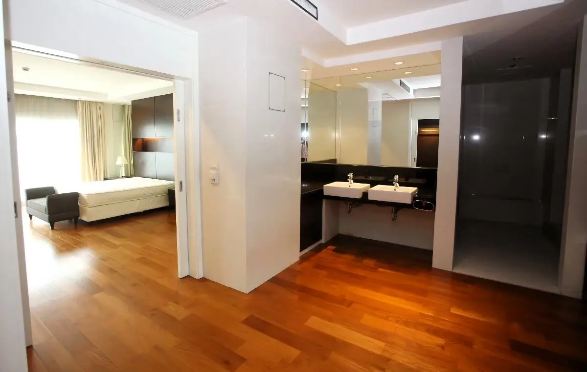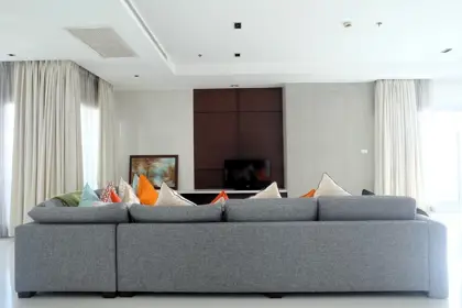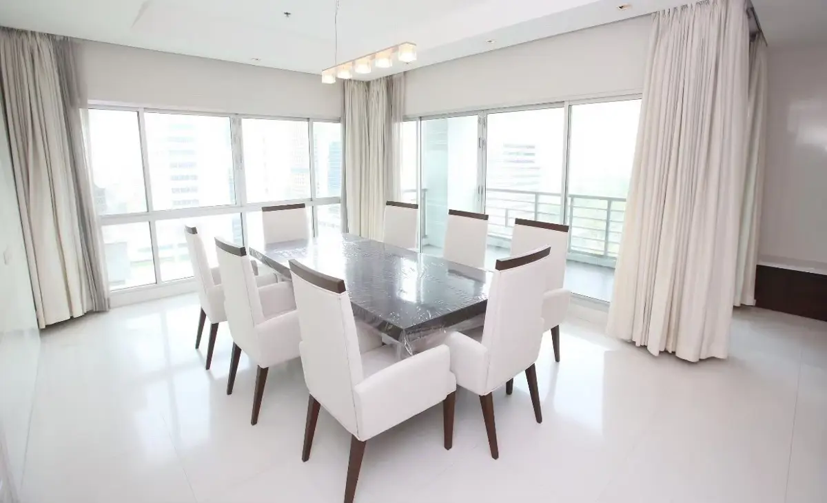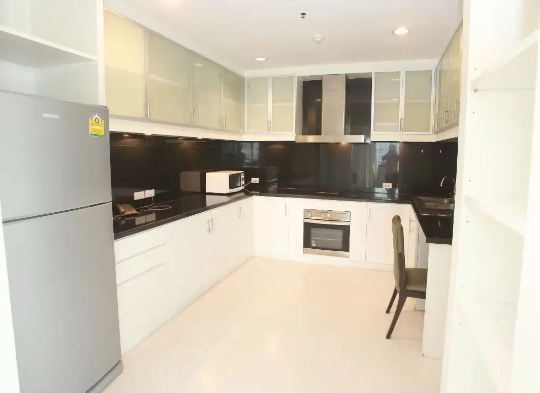 This is a duplex 4 bedroom, 4 bathroom property available to rent at Royal Residence Park near Bangkok's Lumphini Park. The condo measures a spacious 385 sqm., is situated on the 12th floor and comes fully furnished. There is a large balcony, store room, maid's quarters and pleasant view. Royal Residence Park has a swimming pool, gym, playground, tennis court, sauna, parking and security service.