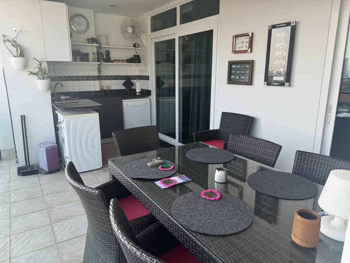 European kitchen with ceramic hob, extractor fan and granite countertops. Air Con. Covered balcony with ceiling fans. TV and Internet outlets. Built-in wardrobes etc.
