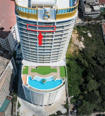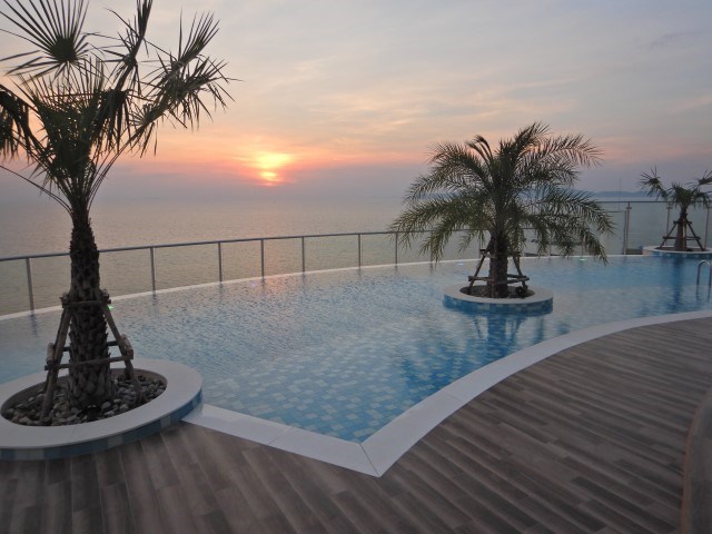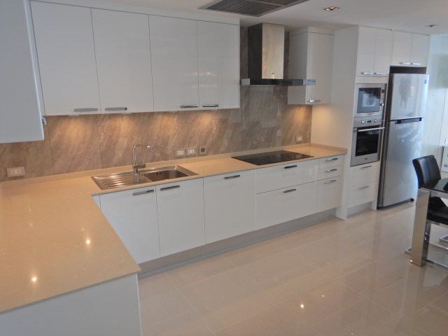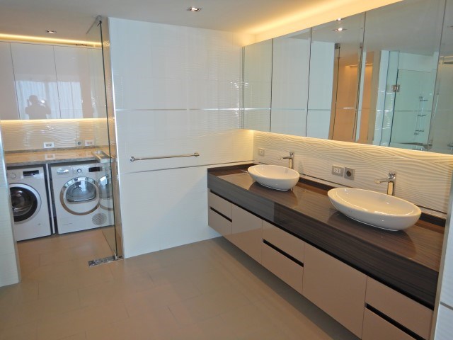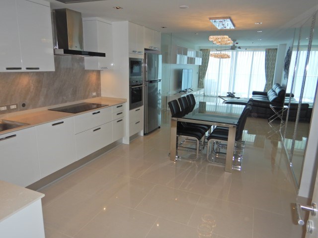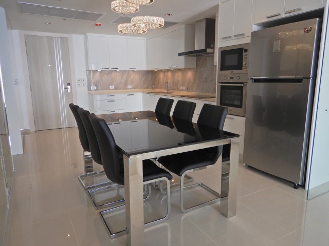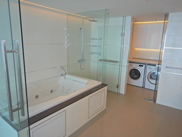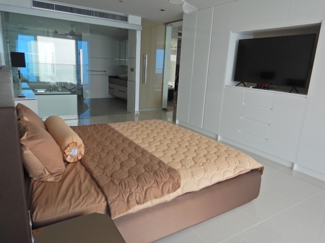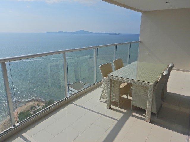 Luxury beachfront condo on floor 26th , front unit with full sea view and pool view, living ara 161 Sqm, 3 bedrooms, 2 bathrooms, 1 separate guest toilet, laundry room with washing machine & condenser dryer, European kitchen, 2 large balcony, 24 hours security, swimming pool on floor 15th, fitness room, covered parking, foreign name, located at Pratumnak Soi 5