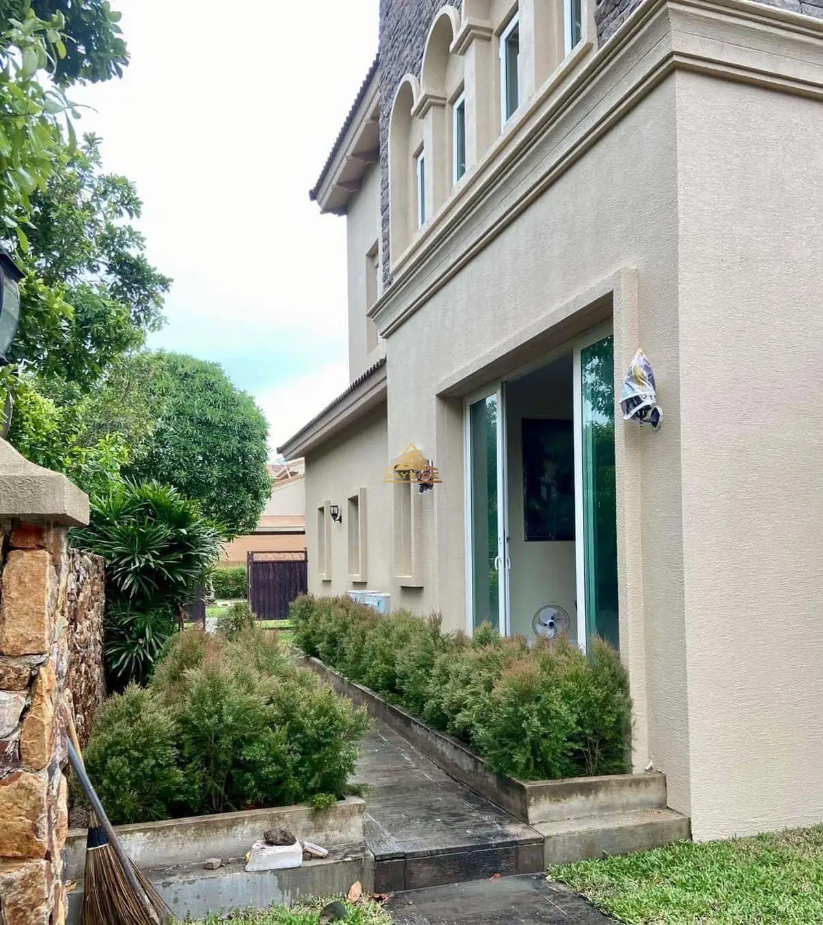 There is a large garden area and a private swimming pool in the house, chlorine system