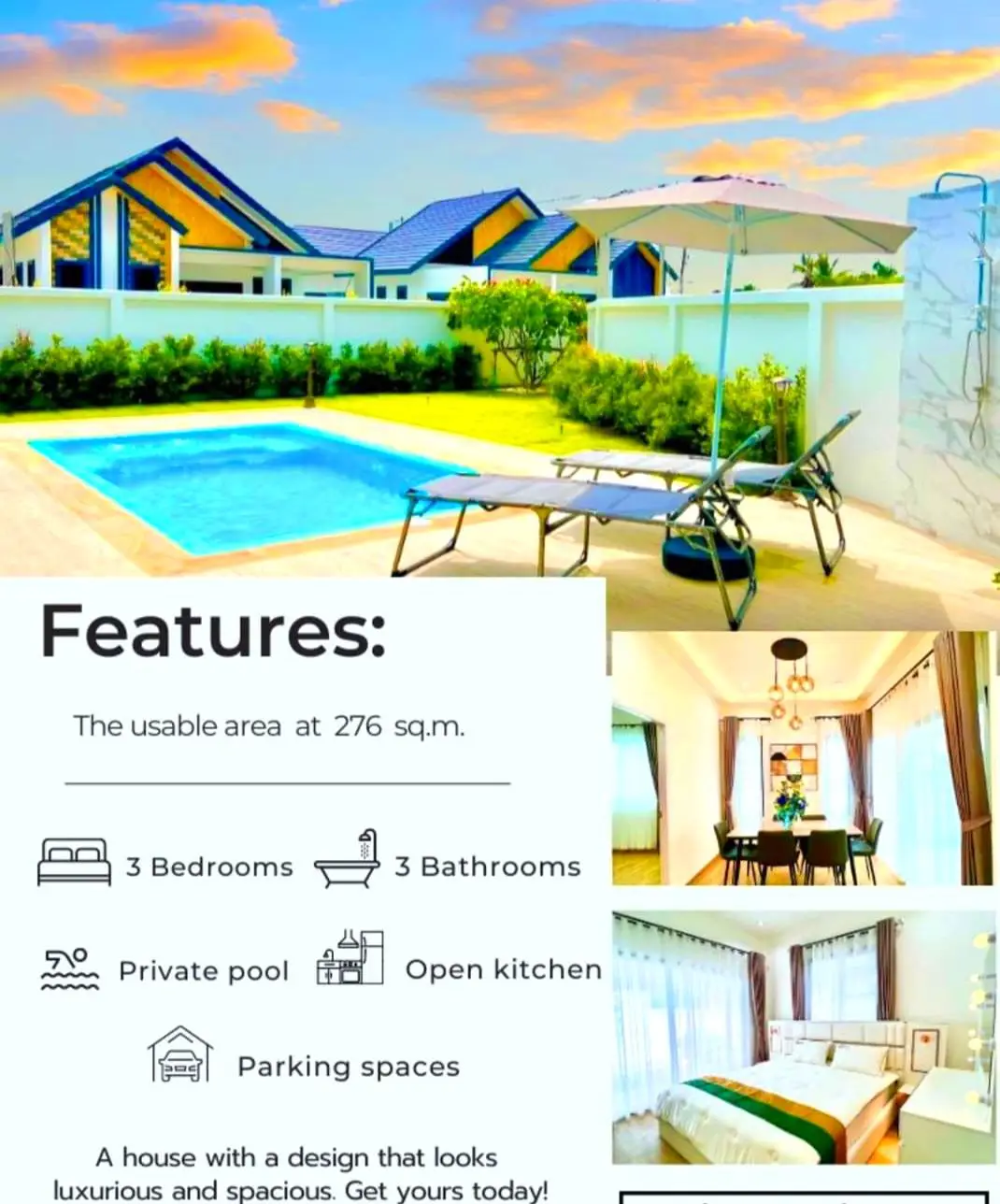 This almost-new single-storey detached house with a pool located in a quiet & serene neighbourhood in Chalong can be YOURS to own for $270k! (8.9 mil ฿) Drop us a message or give us a call now to find out more!