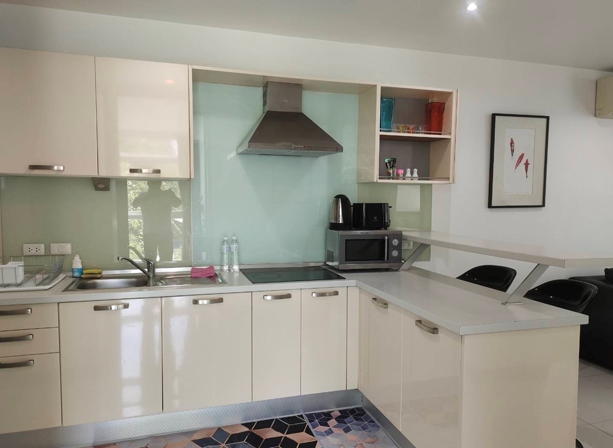 2 Bedrooms, 2 Bathrooms Condo for Sale in South Beach Condo in Pratumnak soi 6, offering 72 Sqm of living area, located on the 2nd floor, comes full furnished. Built-in kitchen have white cabinet color included electric hob, sink, microwave, fridge, air con, comfortable sofa with flat screen TV, en-suite bathroom, wardrobe.