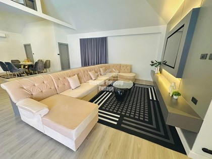 The villa features a large open-plan living area with high ceilings and abundant natural light, creating an inviting atmosphere. The fully equipped European kitchen is perfect for cooking and entertaining, with modern appliances and ample storage space. Each bedroom is generously sized, offering en-suite bathrooms and direct access to the pool or garden area, ensuring privacy and comfort.