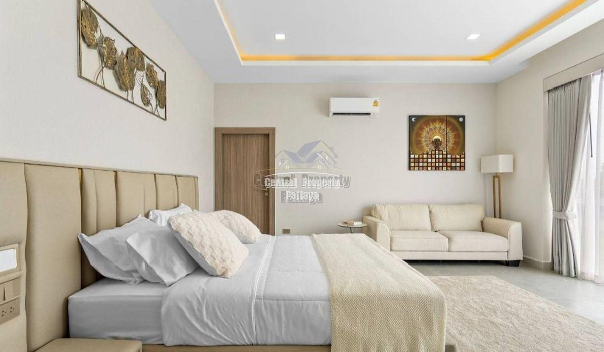The spacious interiors are thoughtfully designed to cater to family living or rental potential, providing ample room for comfort and privacy. The villa's location in a sought-after area offers tranquility while being conveniently close to Pattaya's finest attractions, schools, and dining options.