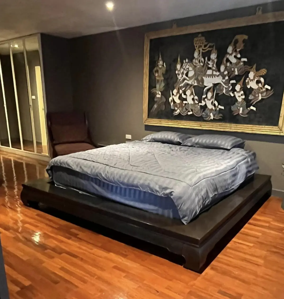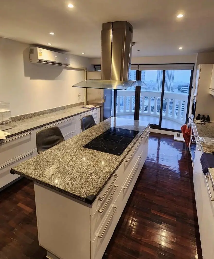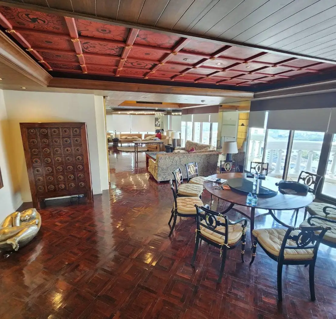 Welcome to this exceptional two-bedroom condo for rent in Bangkok, located on the 18th floor and offering breathtaking sky and horizon views. Spanning an impressive 267 square meters, this uniquely designed residence features a sophisticated Thai art studio aesthetic that blends culture with modern luxury.