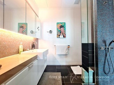 The luxury bathroom exudes opulence, ensuring a pampering experience.