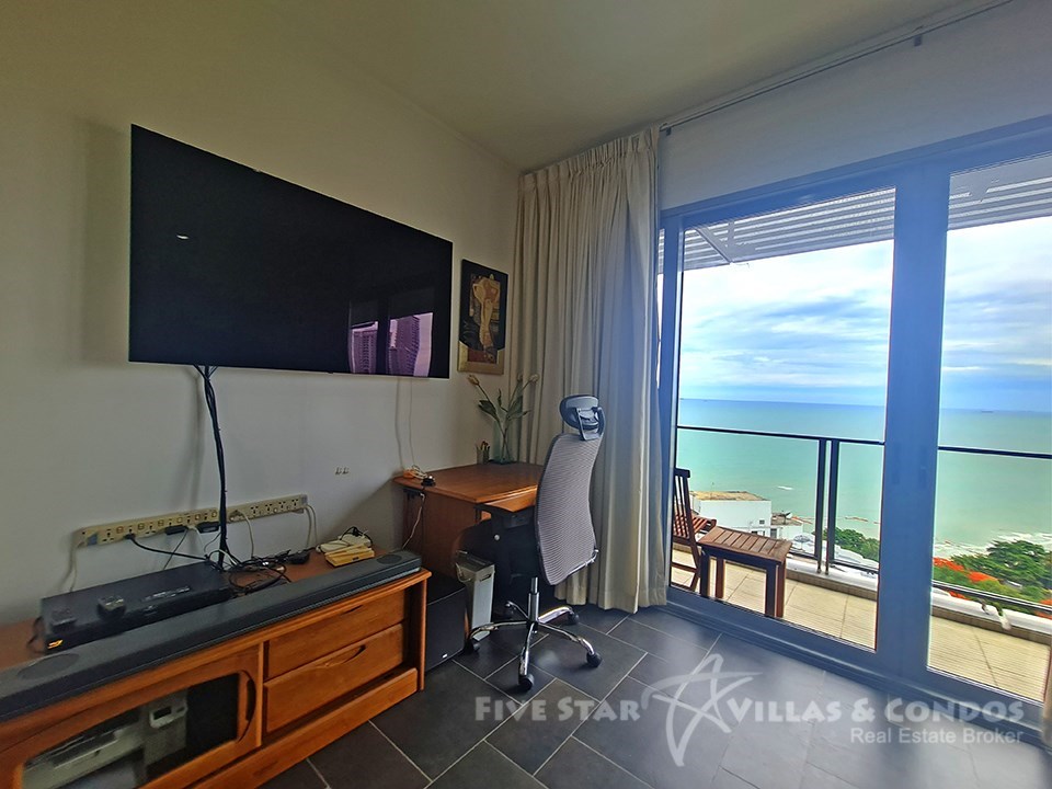 Unwind and revel in the breathtaking ocean vista from the expansive, ocean-facing balcony, perfect for enjoying the soothing sea breeze.
