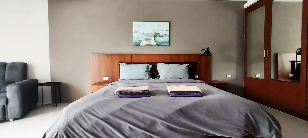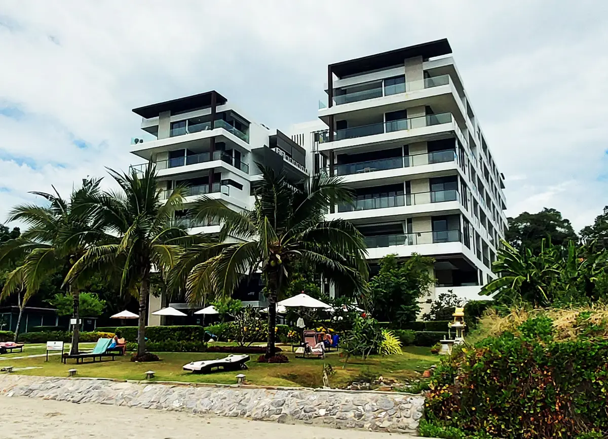 This condo is located in Escape Condominium, directly on a private beach in Mae Phim, Rayong. Also walking distance to all the restaurants and bars, but still in its own secluded cove which gives the feeling of a private beach and utmost privacy.