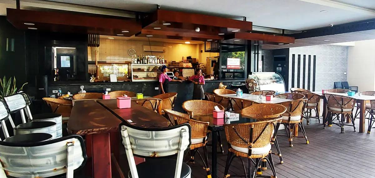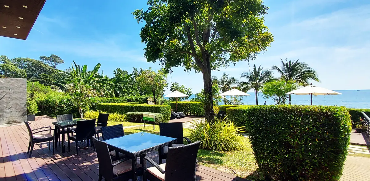 Between the condo building and the beach there is a swimming pool and a very nice garden/park. There is also a restaurant with both Thai and Western food, as well as a gym. There is also a service office and post boxes here.