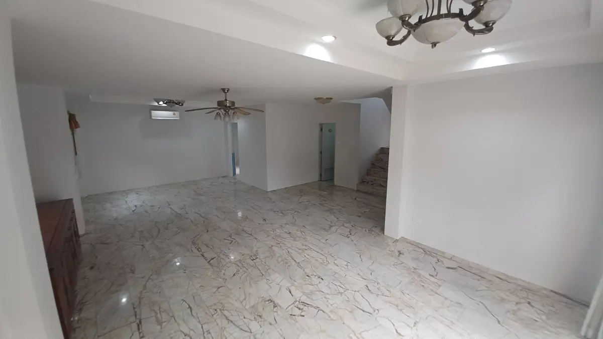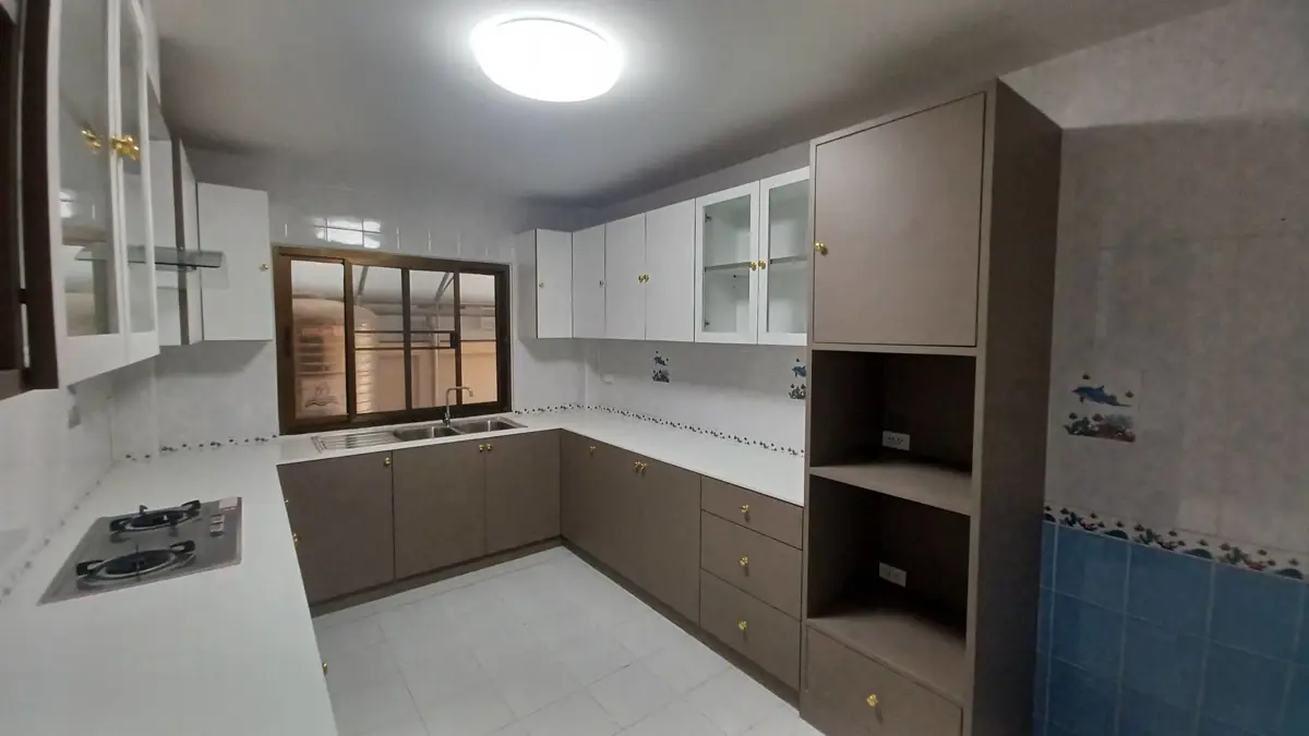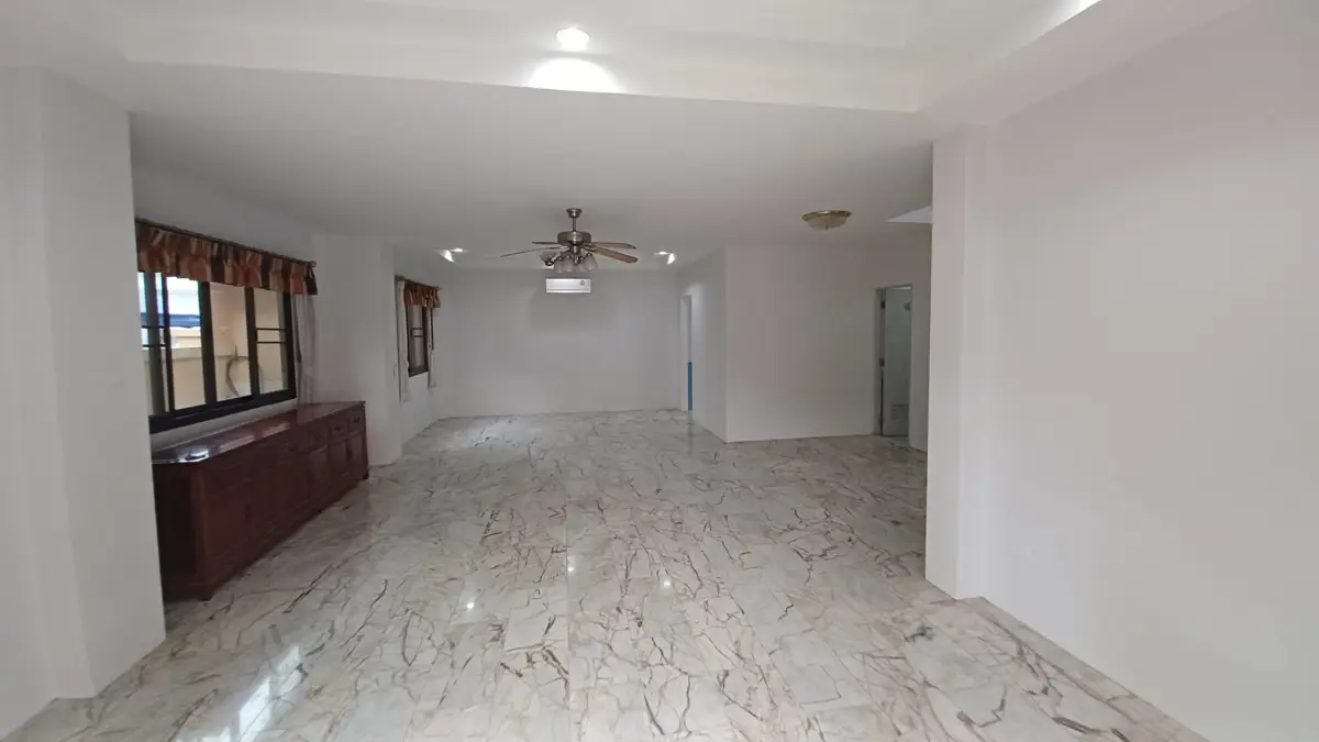 Spacious and recently refurbished, this 4 bed, 5 bath, family home is offered for sale in North Pattaya in Thai/company name. The unfurnished, contemporary interior is generous in size and includes a large European family kitchen, substantial entertainment and dining area, 4 large bedrooms and 5 modern bathrooms, most of which are ensuite. The exterior has a large al-fresco dining area and low maintenance garden with covered parking for 2 vehicles.