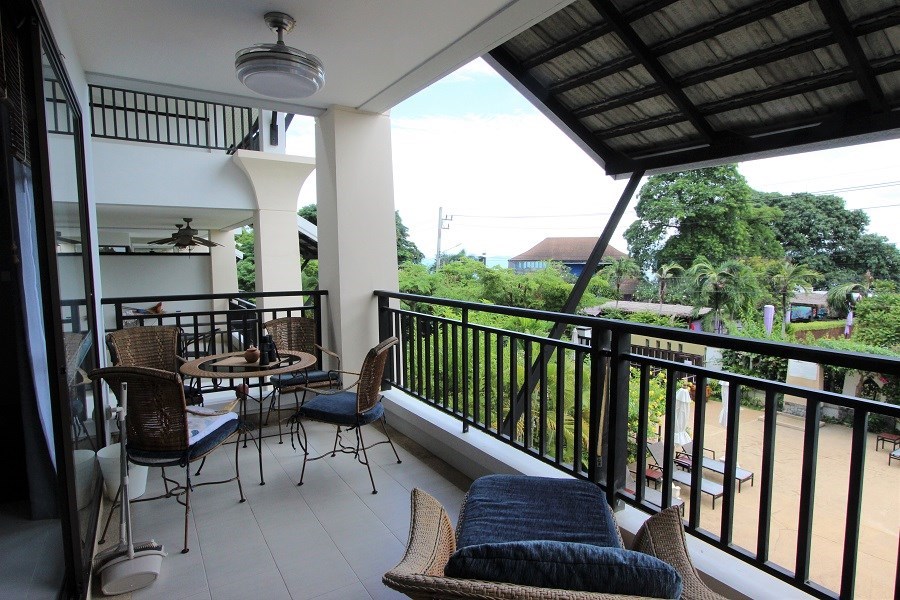The unit is a corner unit and situated on the second floor with view of garden, pool and the sea.