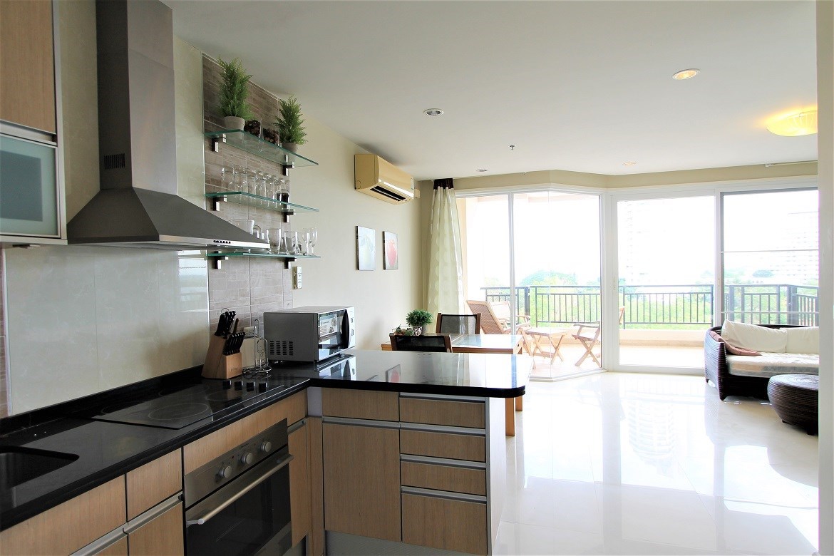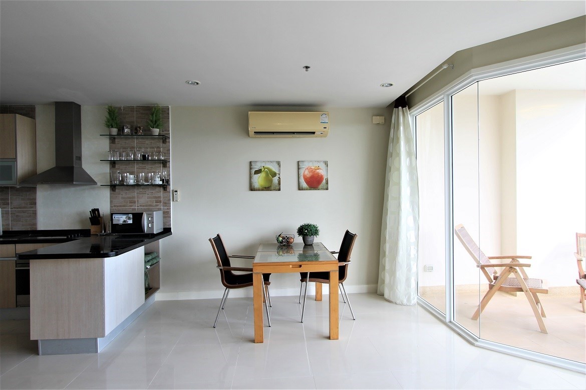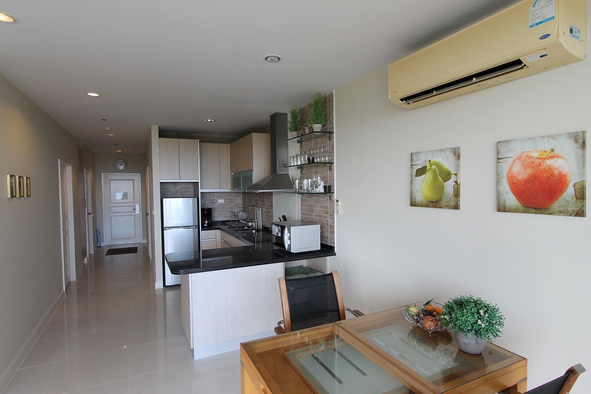 The unit is situated on the 6th floor, overlooking the pool and with perfect sea view all the way down to Jomtien Beach.