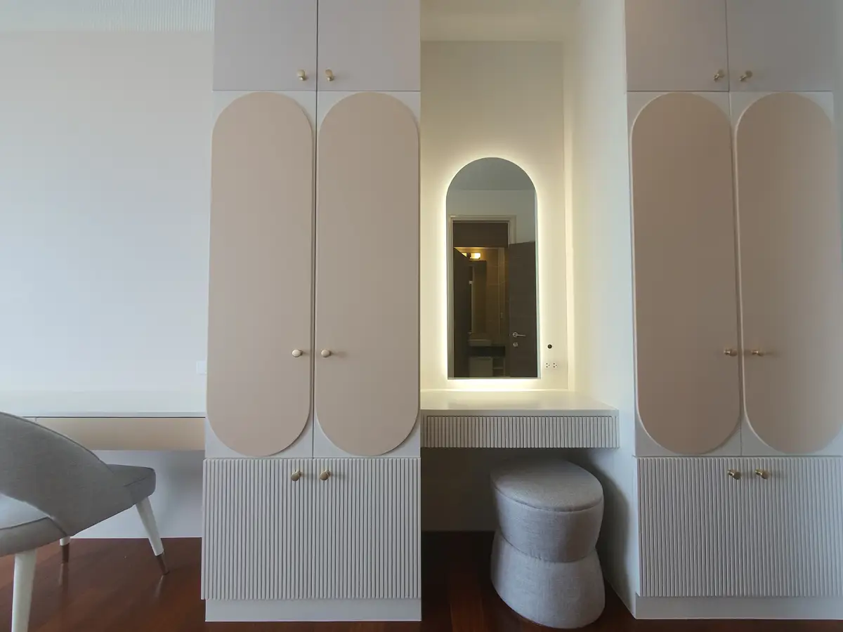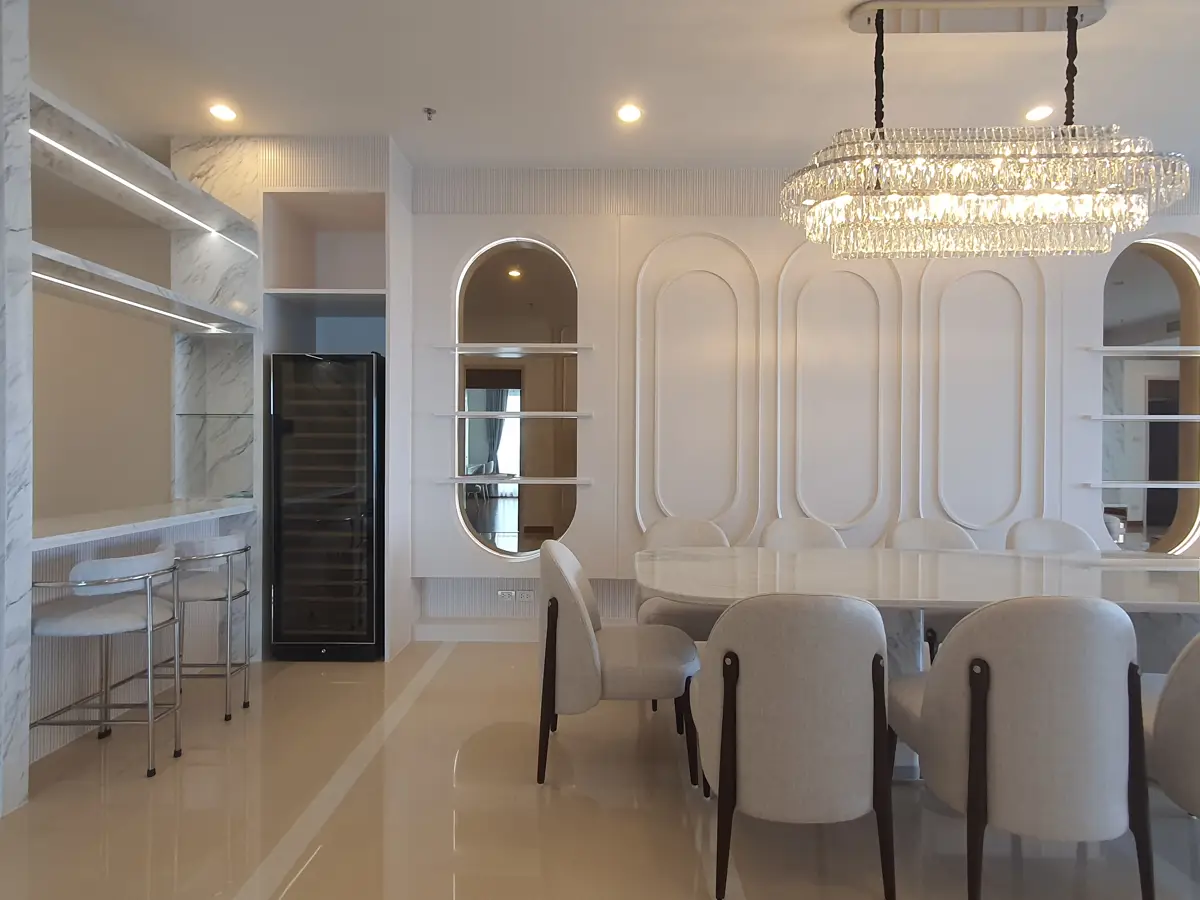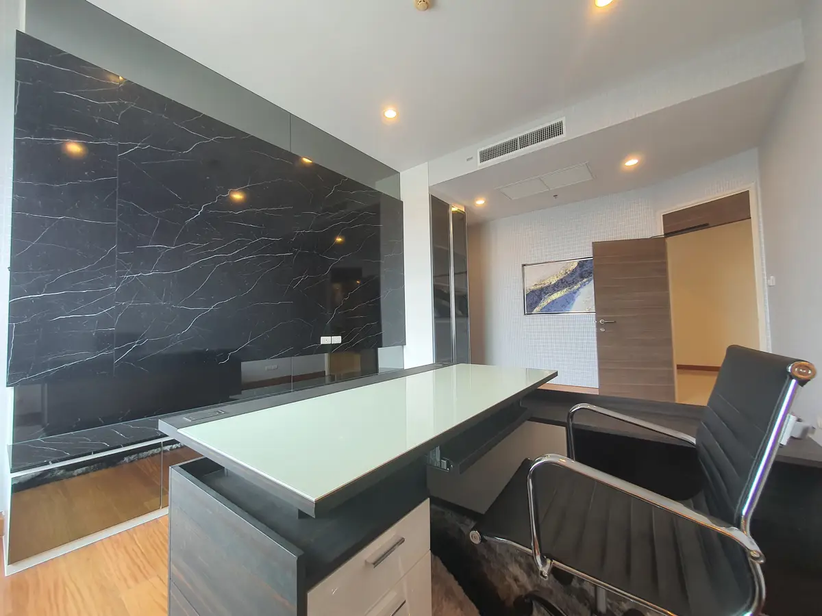 This is a 4 bedroom, 4 bathroom penthouse on the market for rent at Supalai Prime Riva, on Rama 3 Road, Bangkok. The spacious condo measures 355.55 sqm, is on the 43rd floor with amazing river views and comes furnished.