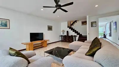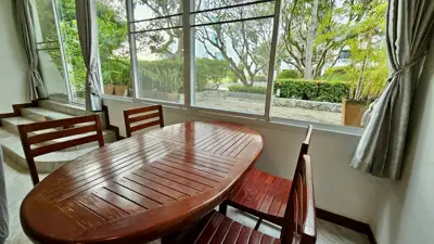 Overall, this beachfront townhouse offers a blend of comfort, space, and seaside living within the Chomtalay resort. With its array of amenities, serene location, and proximity to notable dining spots, it presents an appealing option for those seeking a tranquil yet convenient beachfront residence in the Jomtien Beach area.