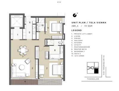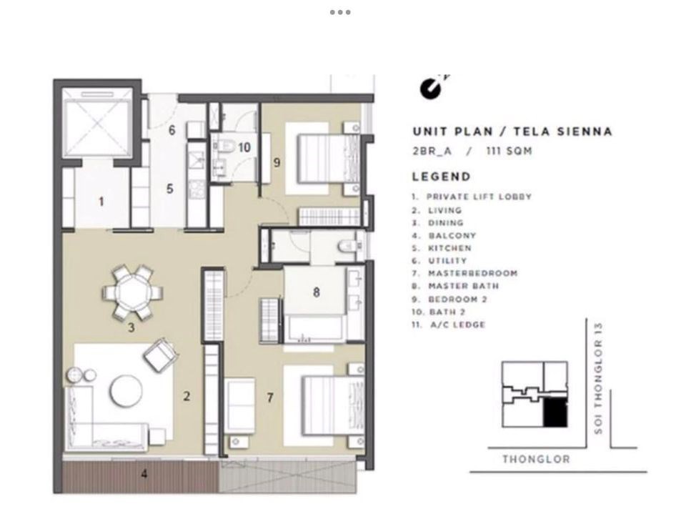 This is a luxury 2 bedroom, 2 bathroom condo for sale with a tenant at Tela Thonglo by Gaysorn Property. The spacious property measures 111 sqm, comes fully furnished and is on the 6th floor overlooking the swimming pool. Tela Thonglo has all the expected facilities including swimming pool, gym, lounge, private lift entrances, concierge, parking and security service.