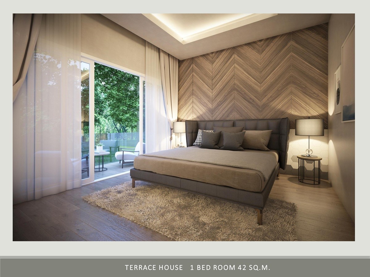 Terrace houses consisting of 42 square meter living area and build in a Mediterranean style are providing a spacious living room, 1 bedrooms, 1 bathrooms with shower cubicle, inbuilt European style kitchen, terrace with deck chairs and table facing a small artificial stream; and are fully furnished including beds, cabinets, sofa, TV, telephone, Internet,tables and chairs.