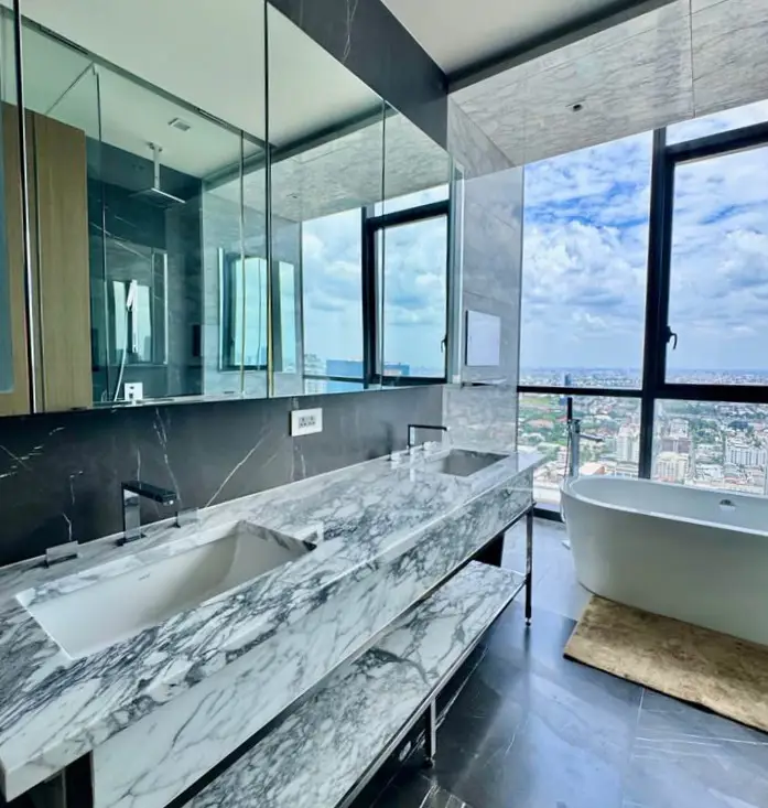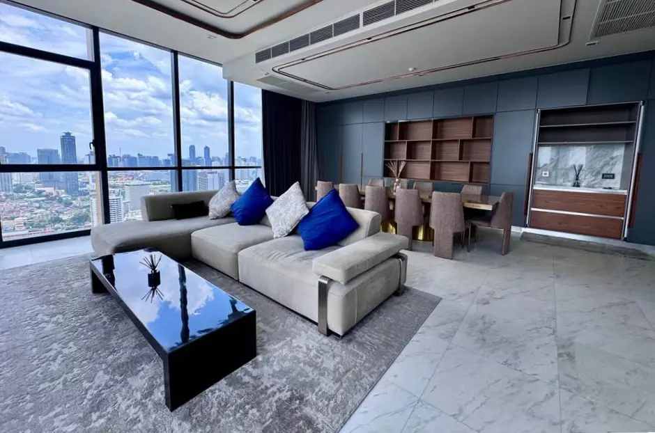 Available to rent at The Monument Thong Lo on Thong Lo Road, is this 3 bedroom, 4 bathroom condo. The fully furnished property measures a spacious 253 sqm, has a private lift entrance, 3m high ceilings and is situated on the 37th floor with amazing views. The Monument Thong Lo, by Sansiri, is a modern, luxury high-rise condominium that has all the facilities you would expect; including a lovely swimming pool, fully equipped fitness center, lounge, concierge, valet parking and security service.