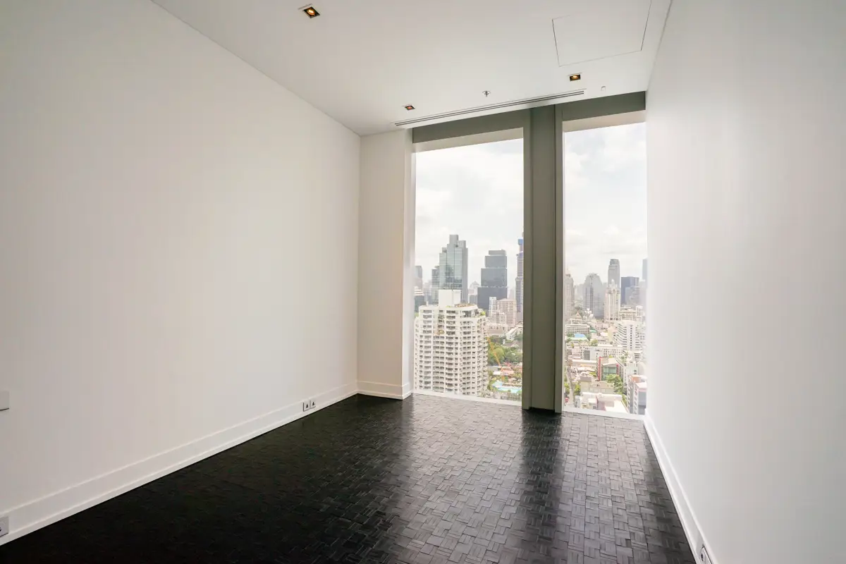 This is a 3 bedroom, 3.5 bathroom property on the market for sale at The Ritz-Carlton Residences at Mahanakhon in Bangkok. The luxury condo measures a spacious 191.15 sqm, has a maid's quarters and utility room and is unfurnished.