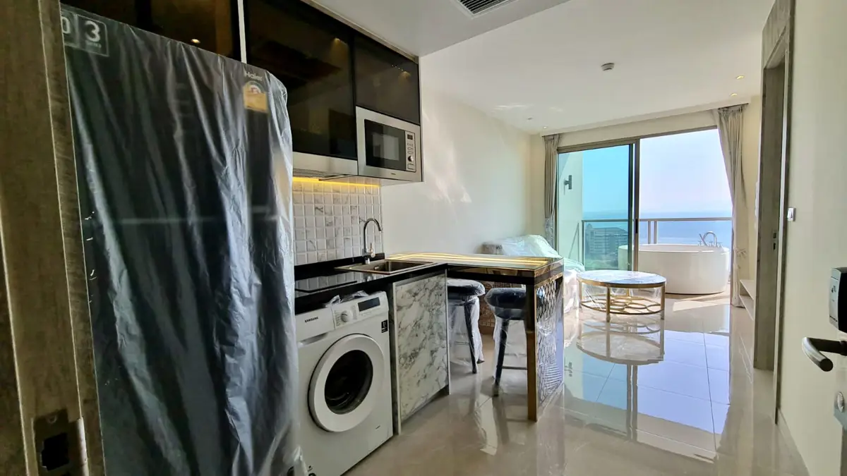 Experience luxurious living with breathtaking sea views in this stylish 1-bedroom, 1-bathroom condo at Riviera Monaco, Jomtien. Located on the 16th floor, this 40 sqm residence offers a perfect blend of comfort and convenience.