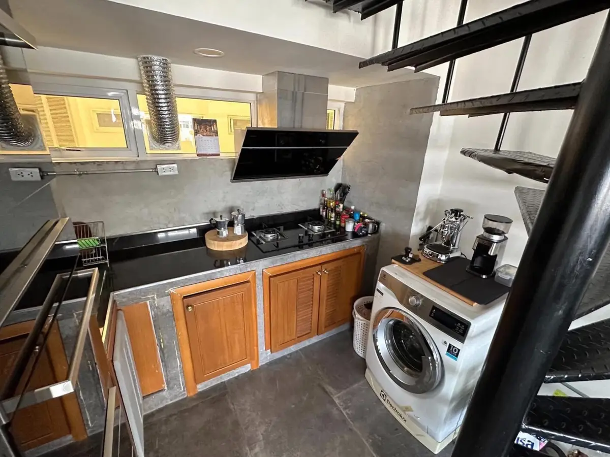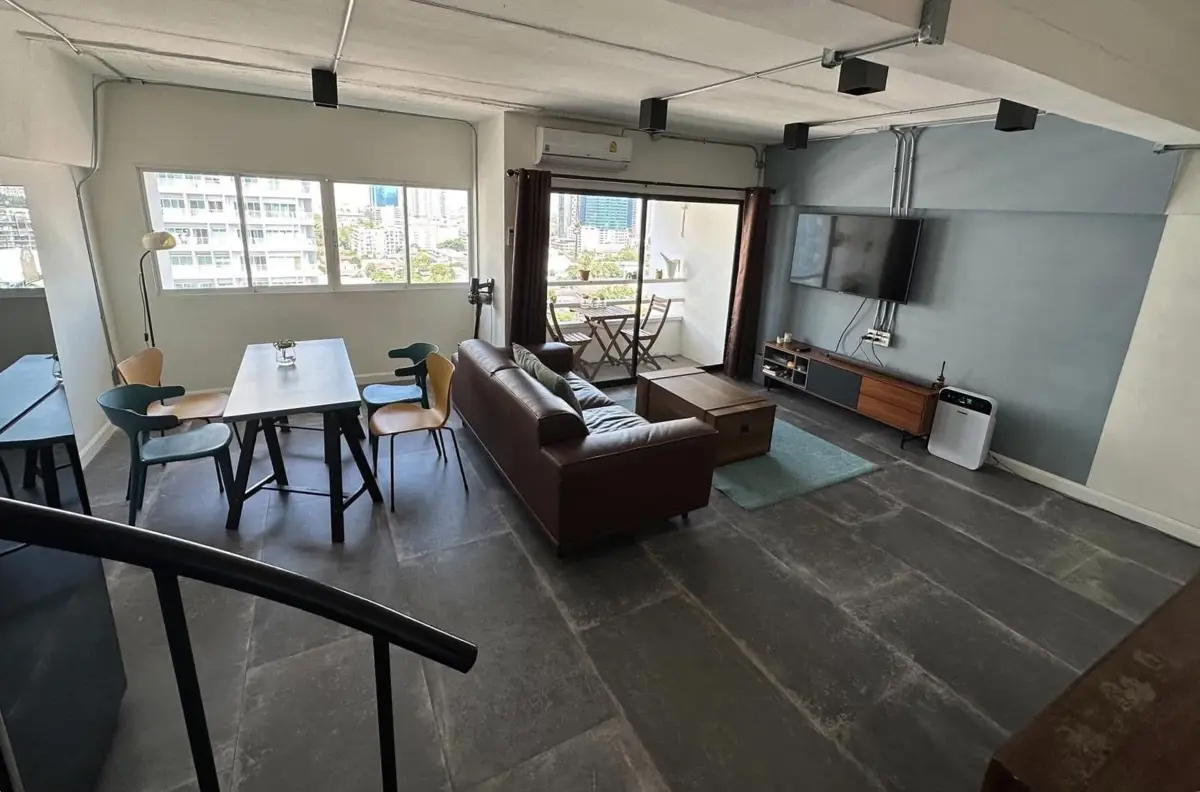 Thonglor Tower on Sukhumvit 55 has this duplex 2 bedroom, 2 bathroom condo available to rent. The loft style condo measures 100 sqm., comes fully furnished in a modern style and is situated on floors 17 and 18. Thonglor Tower has a swimming pool, gym, lounge, security service and parking.