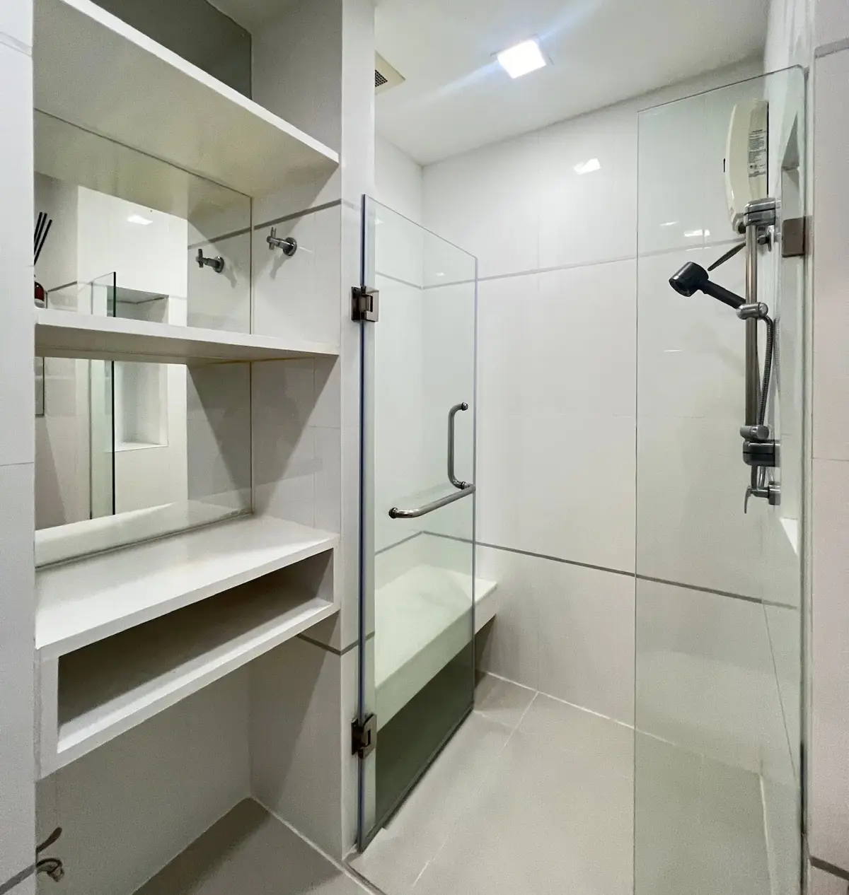 Thru Thonglor offers a wide range of facilities, including a rooftop swimming pool with panoramic city views, a fitness center, sauna, garden area, jogging track, and 24-hour security. The building also provides ample parking and keycard access for peace of mind and easy living.