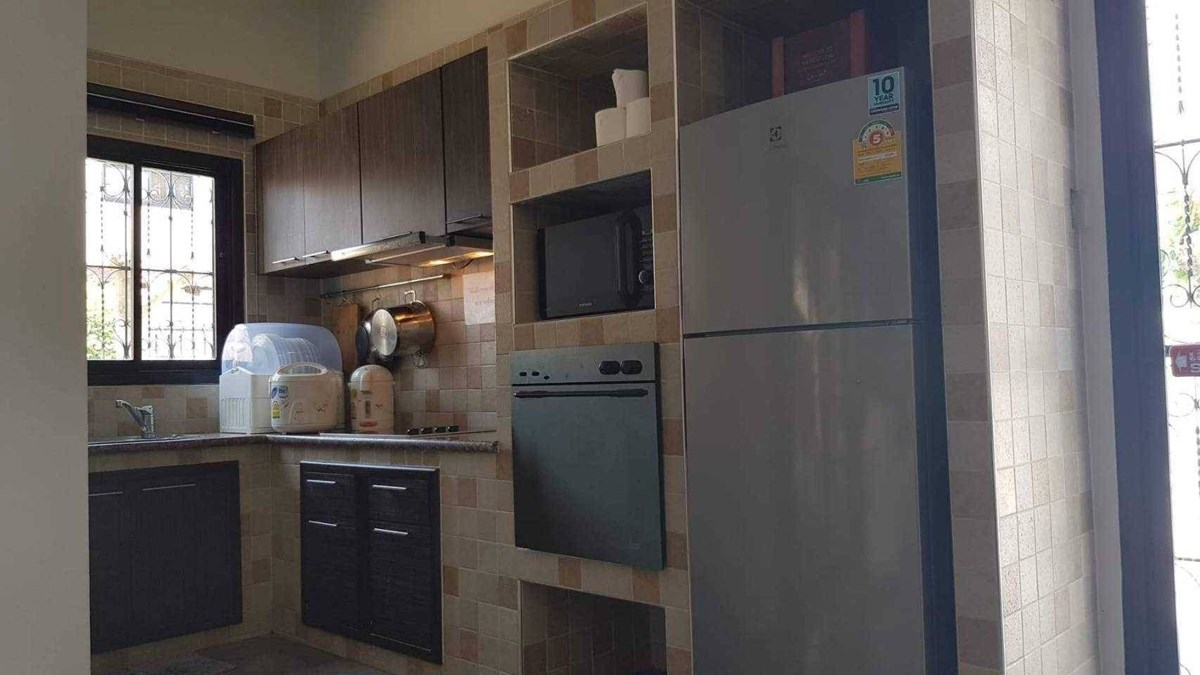Twin houses parallel to the usable area of 444 square meters, with 3 bedrooms and 3 bathrooms, 4 air conditioners, built-in kitchen. fully furnished including the bedroom marble floor There is a swimming pool in the area of the house. There are facilities, parks, 24-hour security system, nearby places. Pattaya Memorial Hospital Bali Hai Plaza