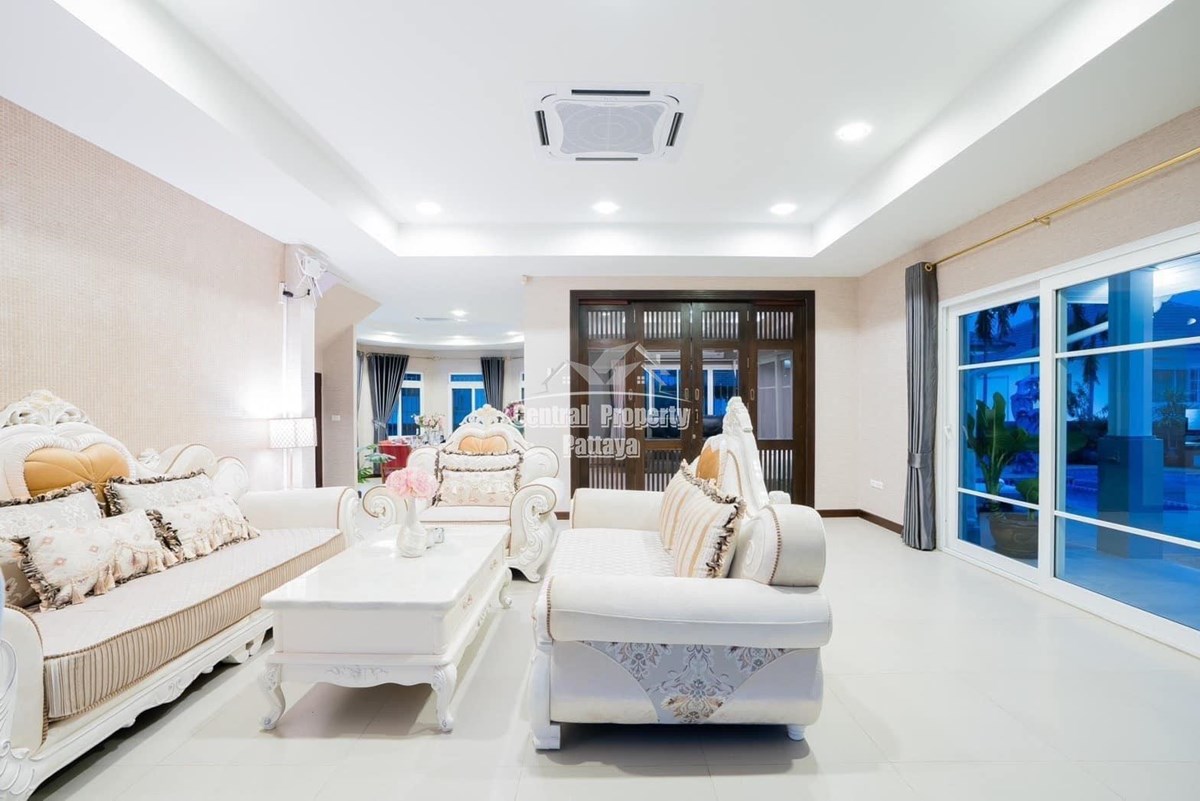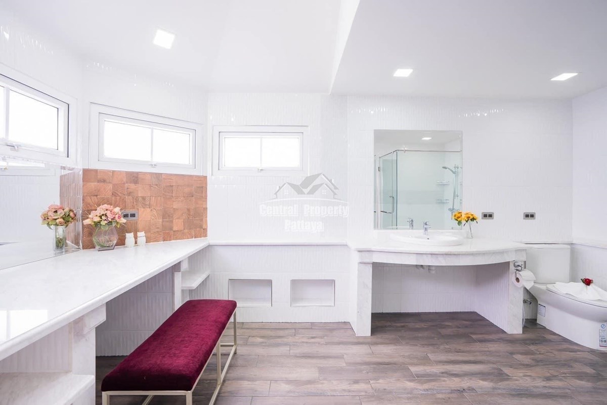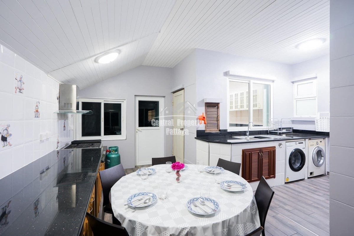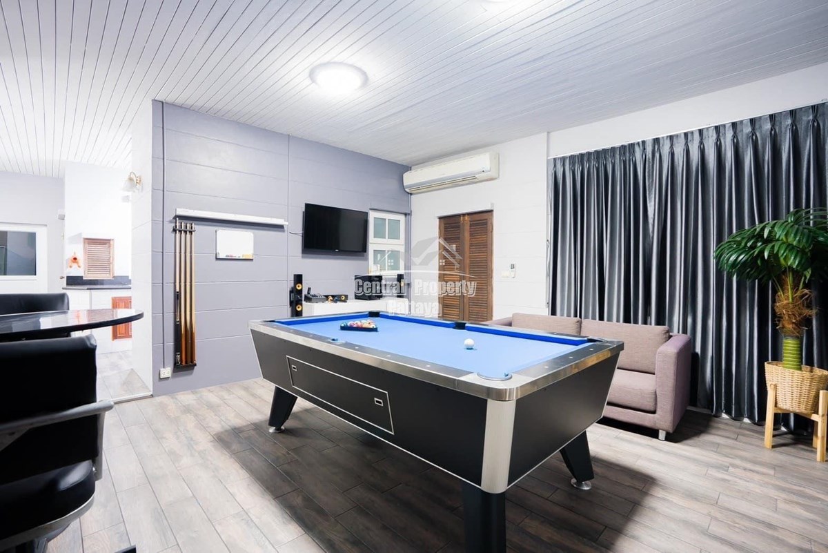 This expansive, recently fully renovated to a very high standard, 5 bedroom, 6 bathroom private pool house is offered for sale or rent in Thai/Company name in Nong Prue, East Pattaya. The contemporary interior is very generous in size and is fully furnished, including a large European family kitchen, spacious dining room and entertaining area. There are fitted wardrobes throughout, as well as substantial storage space and quality appliances included. There is also a large gaming room and bar area which is ideal for entertaining guests as well as everyday living.