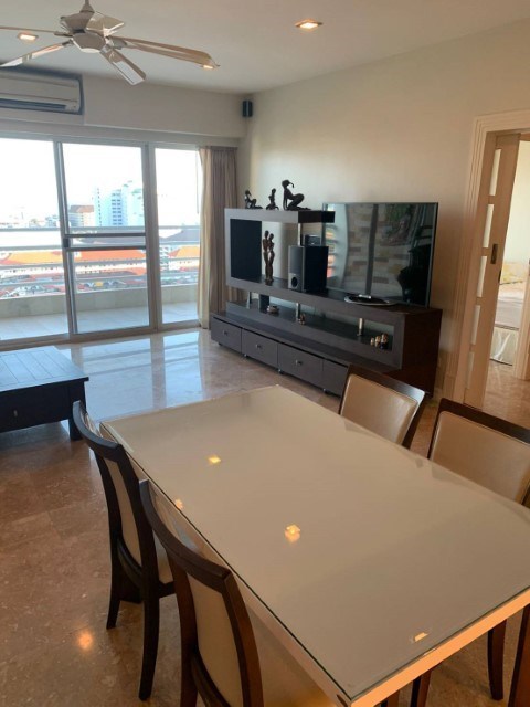 2 Bedrooms on floor 15th with sea view from the large balcony, 2 bathrooms, living area 134 Sq.m, fully furnished, European Kitchen, washing machine, 24 hour security, large communal swimming pool, club house, tennis course, play ground, near by taxi route, restaurant, minimart, Suwannaphumi Airport bus station, just only 5 minutes walk to Dongtan Beach, Jomtien