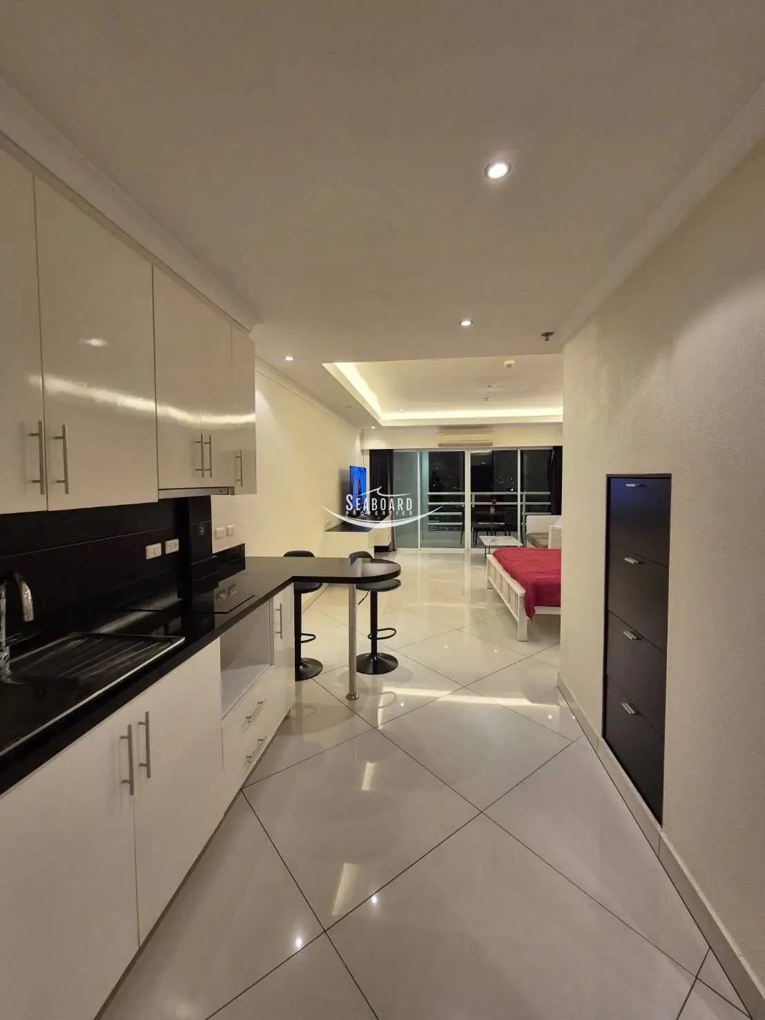all of Pattaya's amenities and attractions. High floor apartment offers a stunning view of the sea and Koh Larn island, providing a relaxing and captivating experience. The condo features a well-decorated interior with a spacious bathroom, small Western kitchen, living area, large ocean-view balcony. Residents can enjoy a communal sea view swimming pool and clubhouse facilities. The Central Festival shopping mall is conveniently located next to the building, offering a variety of shops, restaurants, and cinemas. Bars and walking streets are within a short walk or taxi ride.