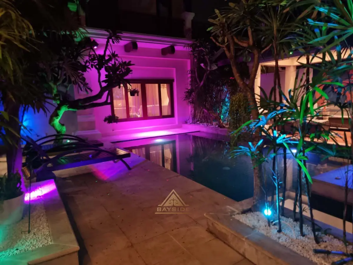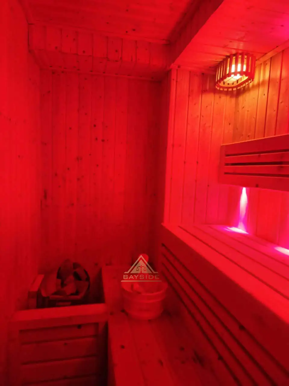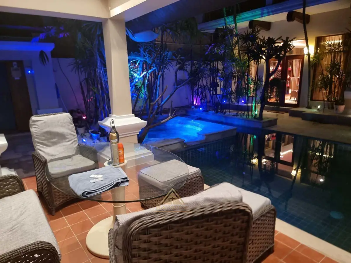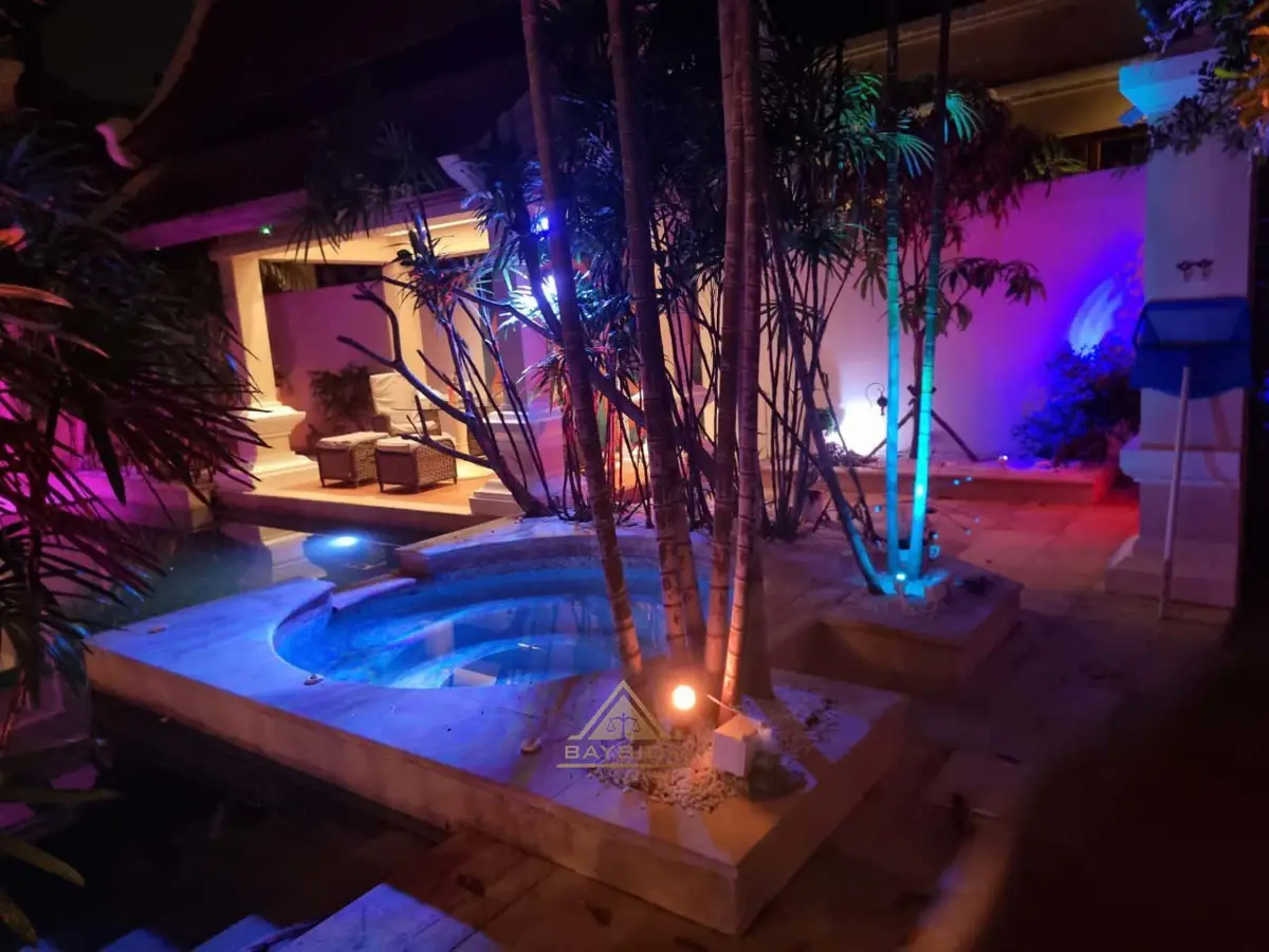 -Private pool, jacuzzi and sauna/Illumination system in the swimming pool, near the swimming pool and pavilion