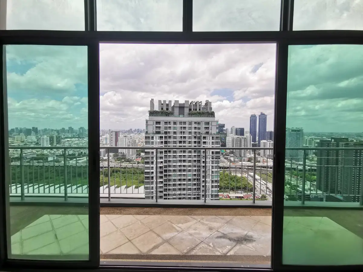 On the market for rent at Villa Asoke, near Petchaburi MRT Station and the Airport Rail Link, is this 4 bedroom penthouse on the 41st floor. The property measures 303.64 sqm, has a private terrace, maid's room, 2 kitchens and is for rent unfurnished. The building has a nice swimming pool, sauna, games room, lounge and fitness center as well as the expected parking and security service.