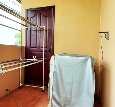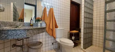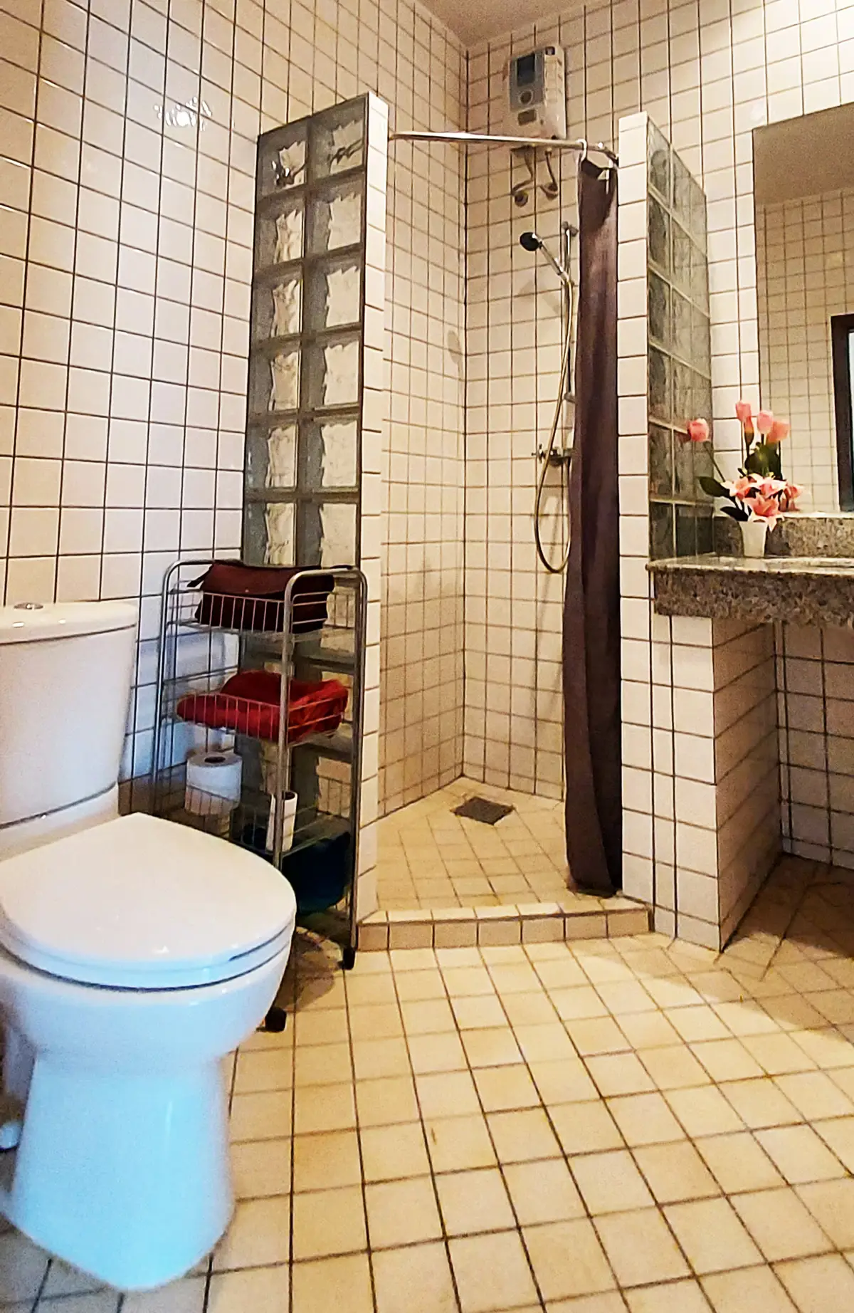 The bathrooms are fully tiled. Both bedrooms and the family room have air conditioning. All doors and windows have mosquito nets.
