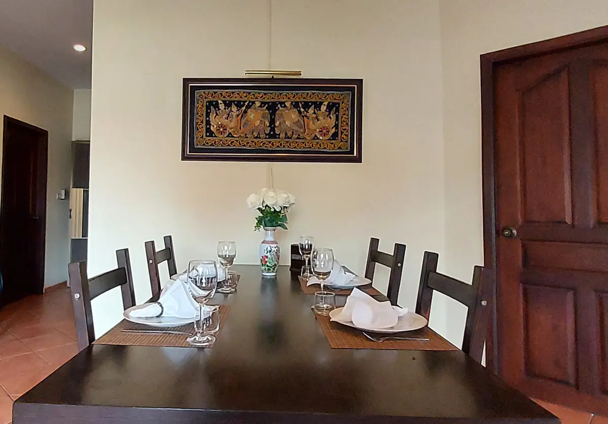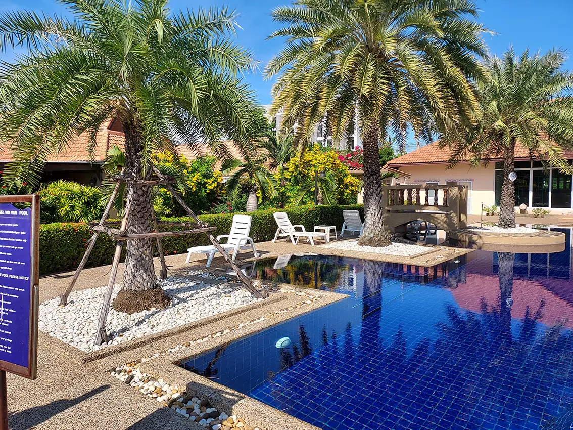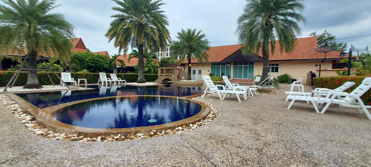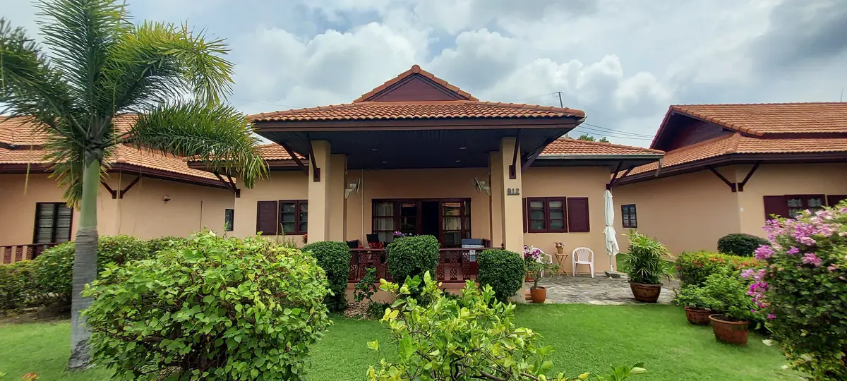 This villa with a living area of 104 sqm and a 16 sqm terrace is located in the lush and established area of Tropical Residence in Bang Saen, Chonburi.