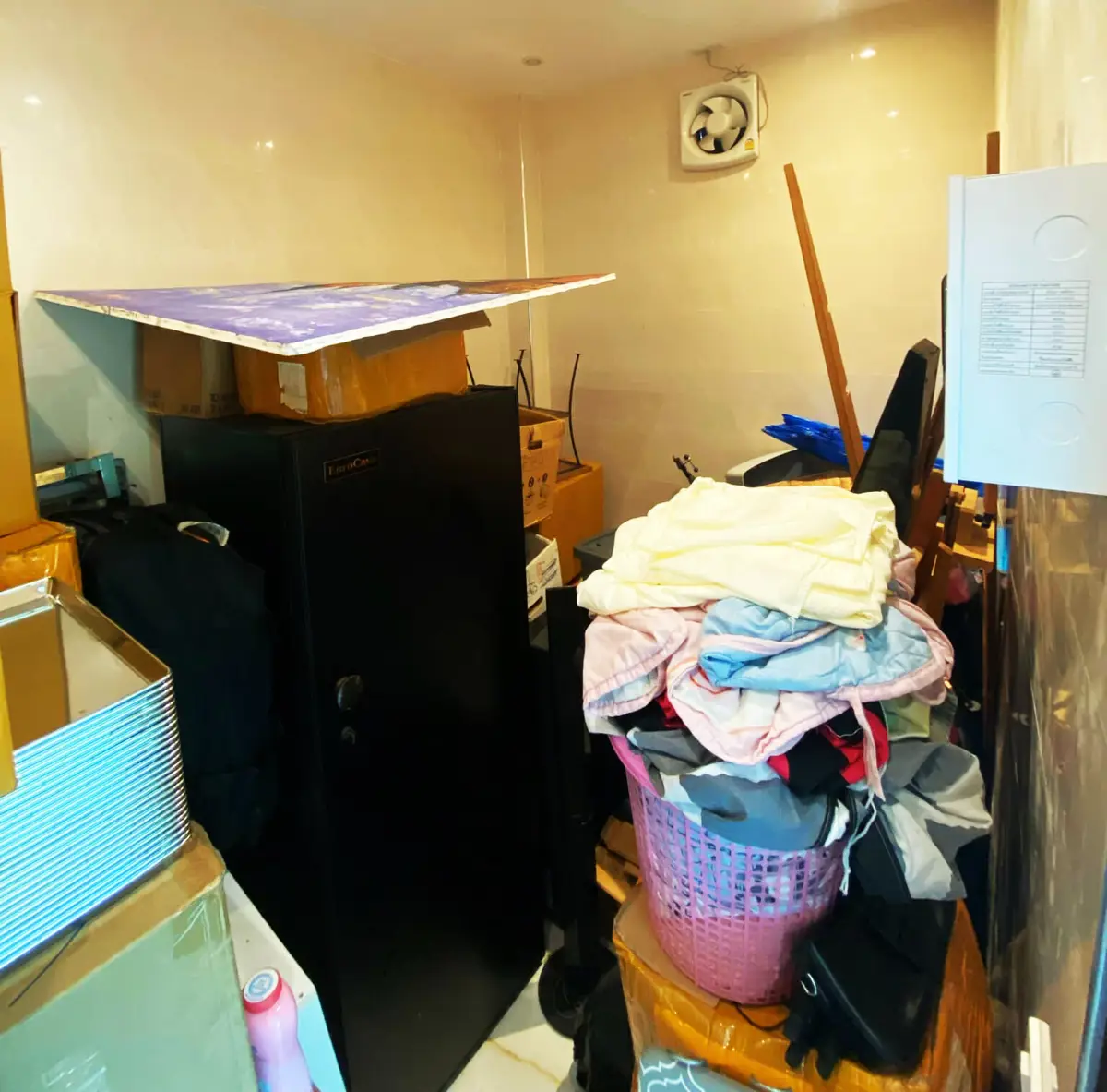 The second bedroom have a large window with top quality curtains and two smaller windows with blinds that you can open. Entry from living room/ kitchen. Built-in desk with mirror and sitting area.