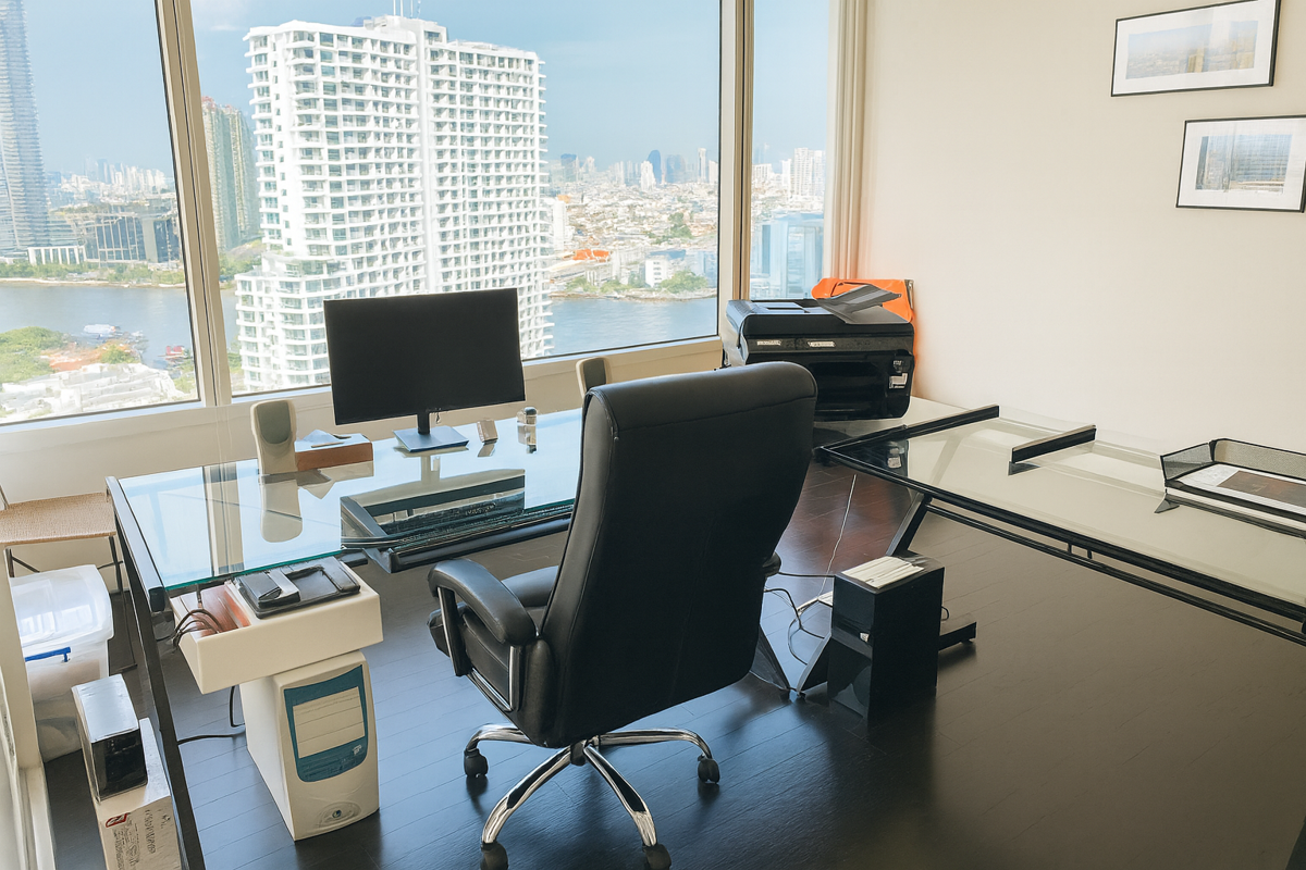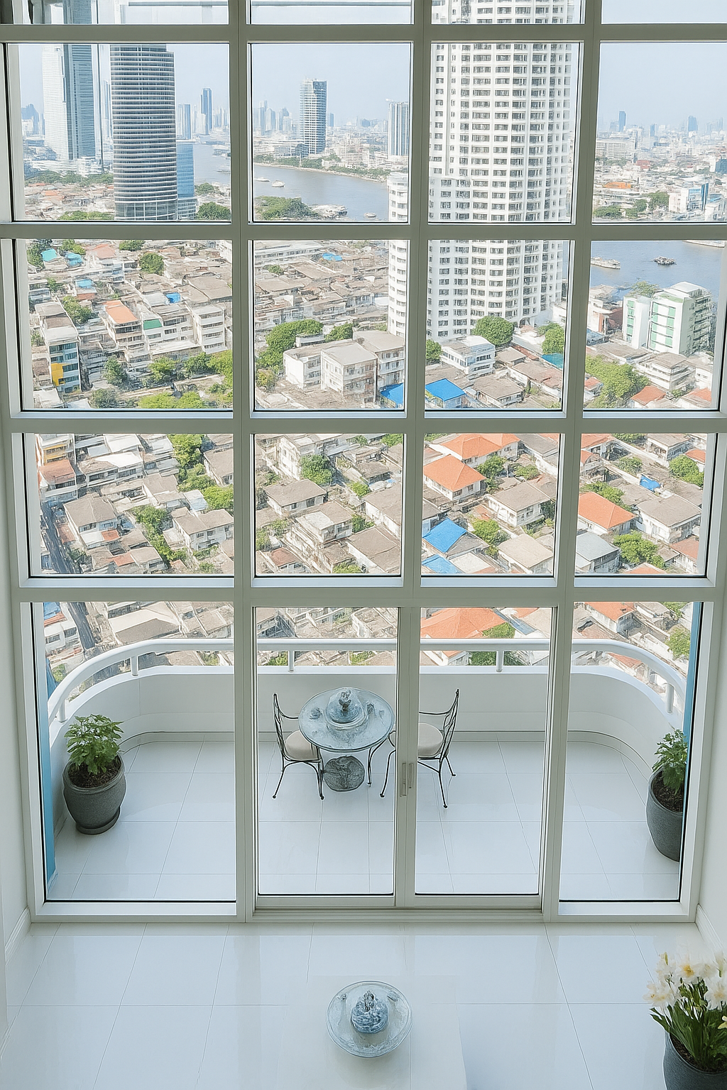 This is a 4 bedroom, 6 bathroom penthouse on the market for sale at Watermark Chaophraya on Charoen Nakhon Road. The freehold condo measures a spacious 273 sqm and is a duplex type with a private 100 sqm rooftop terrace. The property has a maid's quarters, walk-in closet and nice views of the river and surrounding area. Watermark Chaophraya is a pet friendly building with great facilities, including swimming pool, gym, lounge, tennis court, garden, parking and security service.