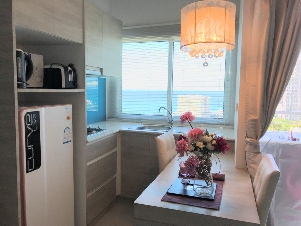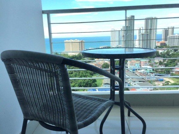 2 Studio units on 23rd floor with adjoining door, total size is 57m2, 1 bedroom, 1 living room, 2 bathrooms with 1 on-suite, 2 balconies, seaview from both balconies, fully furnished, Foreign Ownership. 24 hours security, located at Naklua Soi 16, Wongamat.