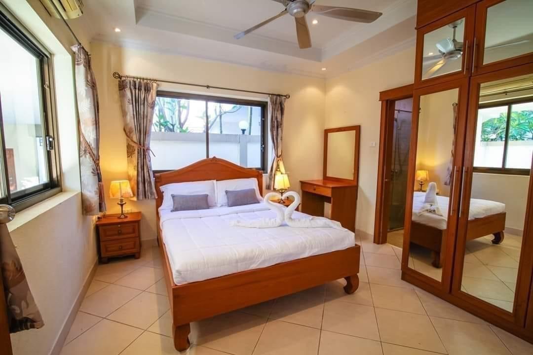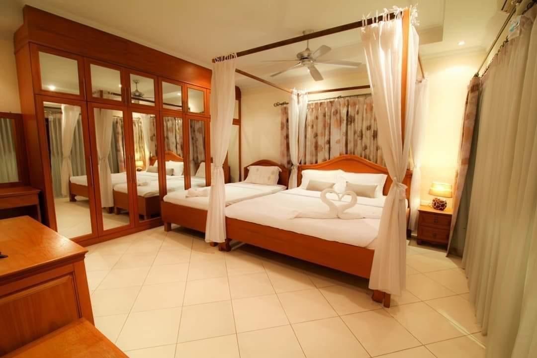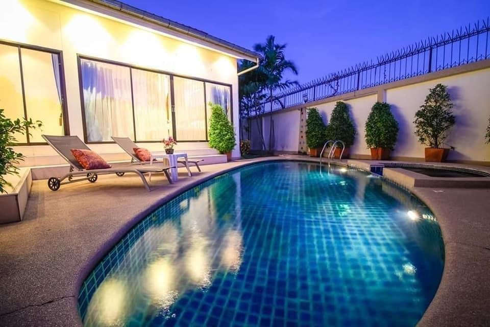 1 Storey house at Chaiyapruk Road, Soi 3, 5 Bedrooms, 4 Bathroom with Jacuzzi Bath in master bedroom, land size 90 Sq.w (360 sqm) , living area 250 Sq.m, fully furnished, 7 air conditions, 7 ceiling fan, living room with Flat screen TV, European Kitchen with washing machine, alarm system, private swimming pool, garden