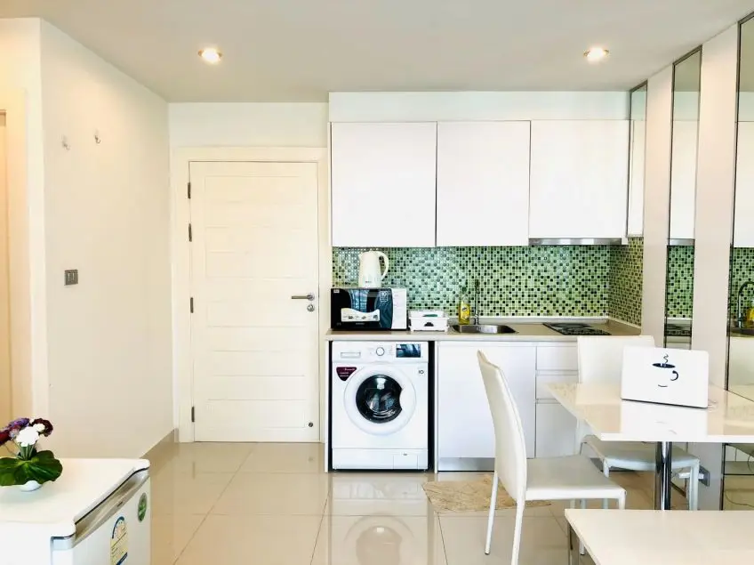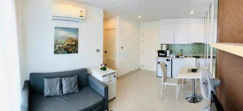 Amazon Residence This is a new 1 bedroom 1 bathroom, 35 sq.m, 6th-floor apartment and it is offered for long term rent. The modern, residential project is located close to local amenities, shops, Jomtien Beach and Sukhumvit road. The apartment is fully furnished with fitted European kitchen including refrigerator, electric cooker, hob and extractor hood, washing machine, dining table and chairs. There is a sofa, coffee table and fitted TV/display unit, modern bathroom, and bedroom with built-in wardrobe. The project features a huge swimming pool with tropical gardens, a fitness center, 24/7 security guards, CCTV, Laundry and housekeeping service. The condo is offered for long term rental of minimum 6 months contract. For more information please contact us now.Facilities