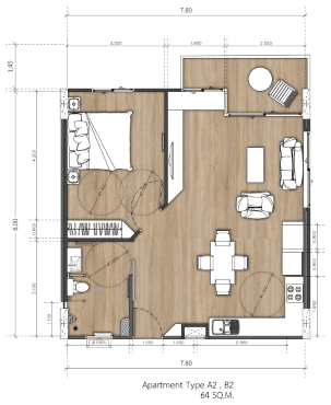 One Bedroom apartment consisting of 64 square meters; with living area. one bedroom. kitchenette with refrigerator. bathroom with shower cubicle. balcony; fully furnished including bed. sofa. TV. telephone. Internet. table and chairs. Apartments are available on all 3 Floors.