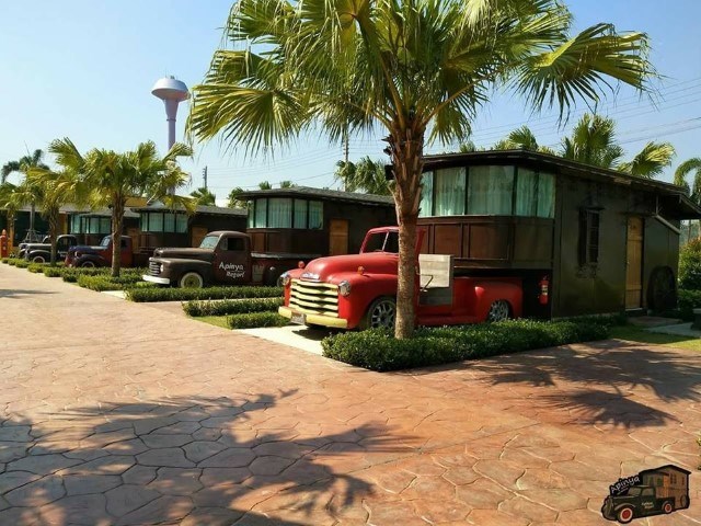Low-key rooms in brightly colored chalets provide free Wi-Fi, flat-screen TVs, minifridges and air-conditioners, as well as covered outdoor seating; some add separate living rooms and sleep up to 6. A house adds a pool table and a private outdoor pool, and accommodates 10 people. There are also quirky cabins built on to the backs of vintage trucks.