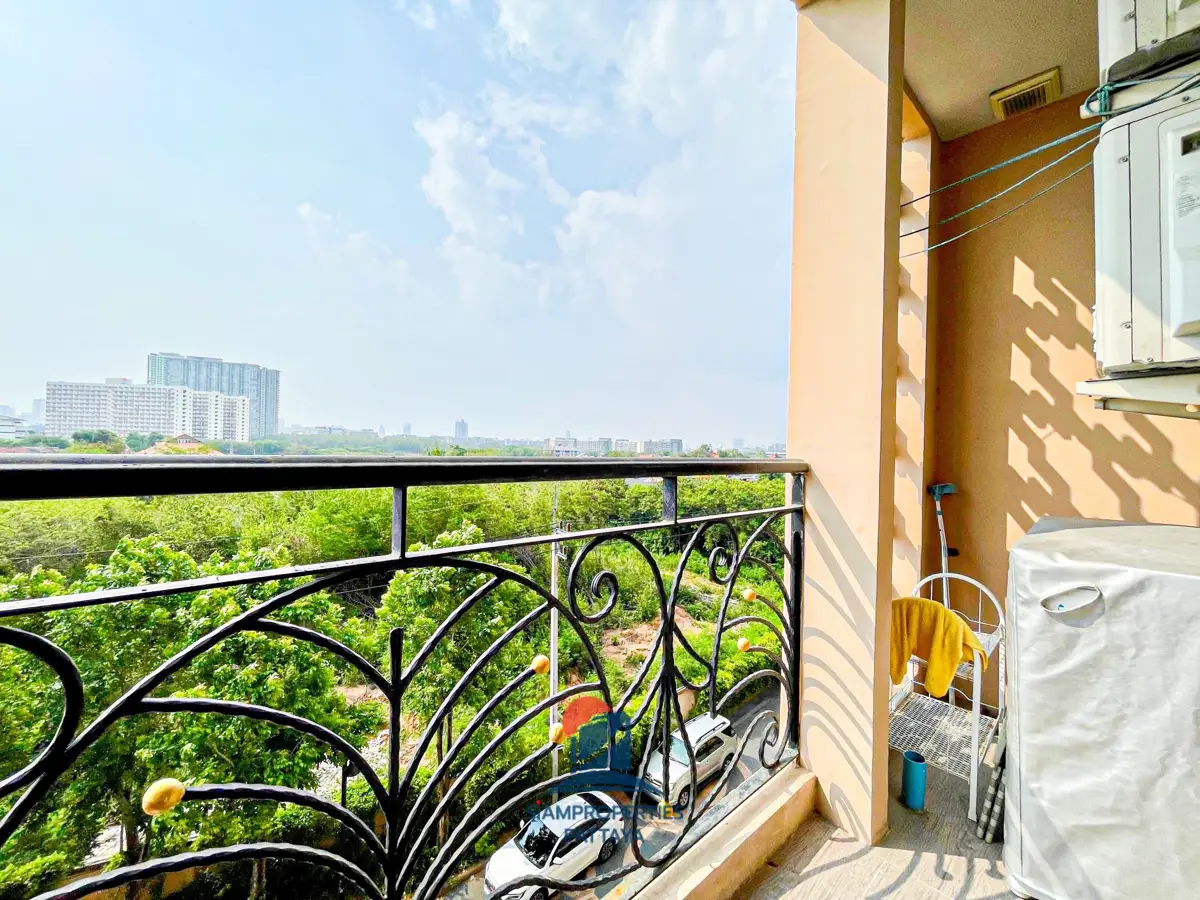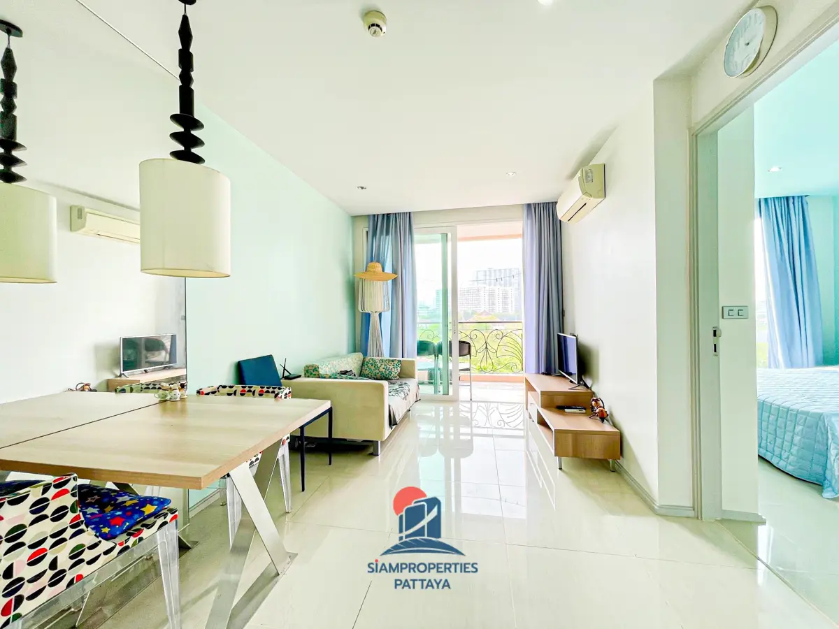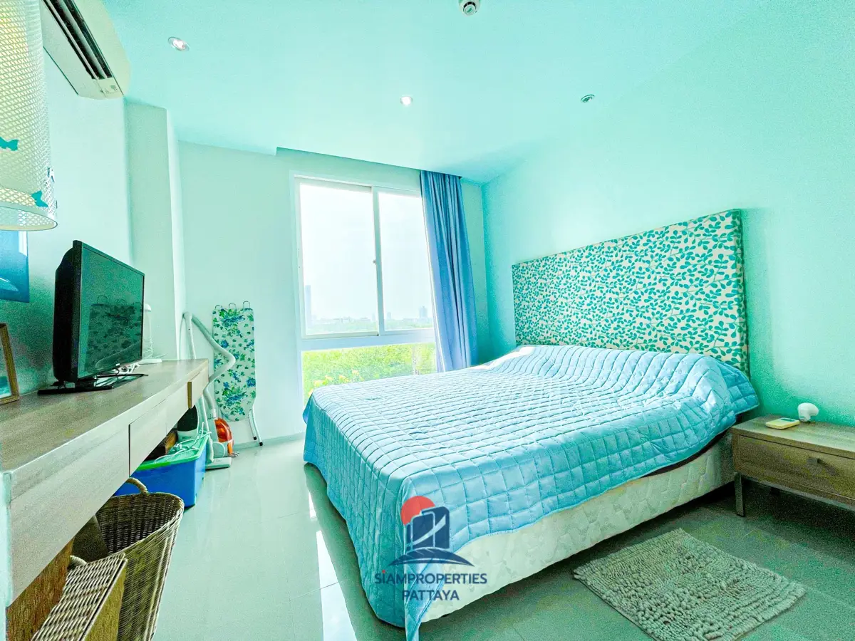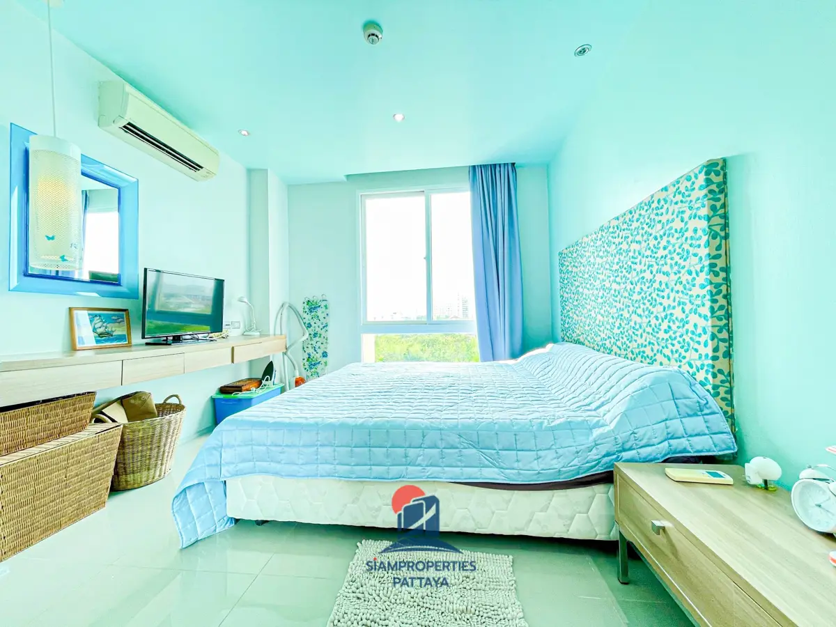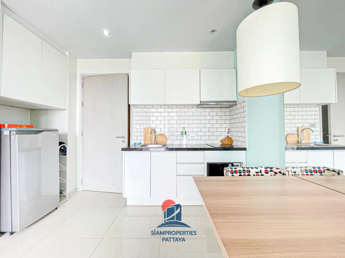 The condominium offers excellent connectivity, with easy access to Sukhumvit Road and a short 10-minute drive to Pattaya City. Its facilities cater to both relaxation and fitness, featuring an outdoor lagoon swimming pool equipped with water slides, lush gardens, a fitness center, a jacuzzi, covered parking, CCTV surveillance, and a 24-hour security system.