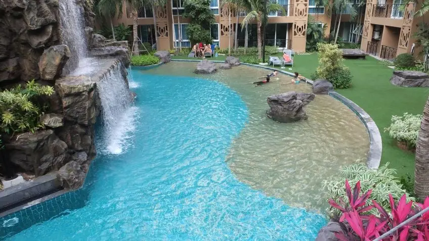 Atlantis Condo Jomtien This low rise complex is located in the Jomtien Area, less than 500 meters to the Jomtien Beach and approx. 1.8 km to Sukhumvit Road. This 2 bedroom apartment is on the 6th floor and overlooking the huge communal swimming pool. The apartment is fully furnished and has a good size fitted European kitchen plus a 2 door fridge, is fully air conditioned, has a fitted wardrobe, 2 flat screen TV's and a washing machine on the balcony. Facilities of the building: 24 hour security guards, key card access, extra large lagoon style communal swimming pool, children’s playground, restaurant on site, 7 Eleven in the complex, gym, rooftop garden, cleaning service, WIFI connection, Cable TV, etc. Offered for Rent on a monthly basis at 27,000 Baht per month for 6 month contract, with a 1 year contract only 25,000 Baht per month. For more information, please contact us now.Facilities