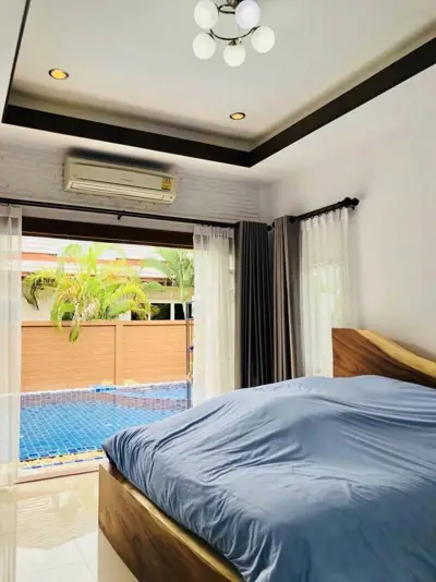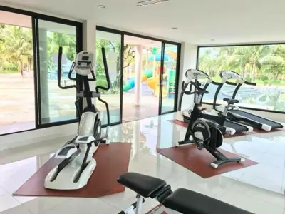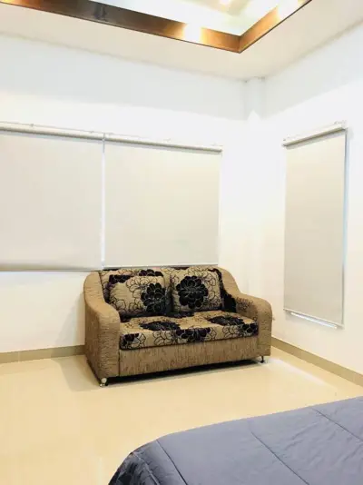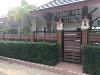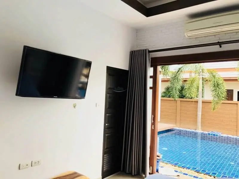 Baan Dusit House Set within a very well-organized and secure village, this 2 bedroom home with a private pool is ready for someone to settle in and enjoy living and using the upscale communal facilities provided by the estate. This modern 2 bedroom, 2 bathroom home sits on a 364 sq.m plot, offers a total living area of around 138sq.m, and has a private swimming pool and small garden. The layout means that the master bedroom has an en-suite bathroom and each room allows for easy access into the garden. As the home is new there is no kitchen, most of the rooms are furnished and equipped with air condition units. Located just 20 minutes out of town, Baan Dusit has become an established village, based on providing homeowners with an excellent environment. Wide landscaped roads help keep a natural setting and every house is set back from the road so it also feels that each house has privacy, yet can still keep low perimeter walls and gates. Communal facilities include a recreation park with a children’s playground, Dedicated fitness areas, a communal swimming pool, and sun deck, centralized, patrolling security plus CCTV control, Cable TV (64 channels) & Wi-Fi zones around the village.