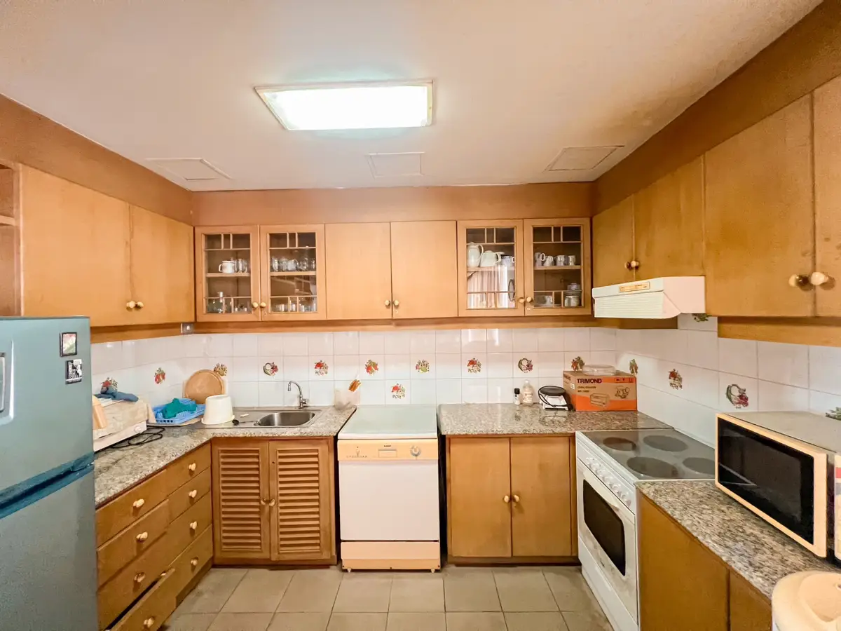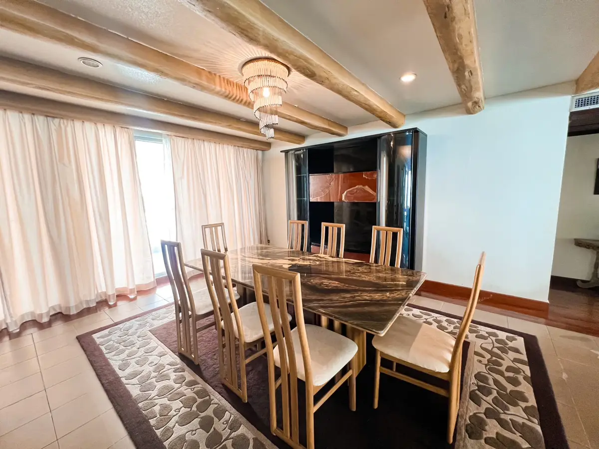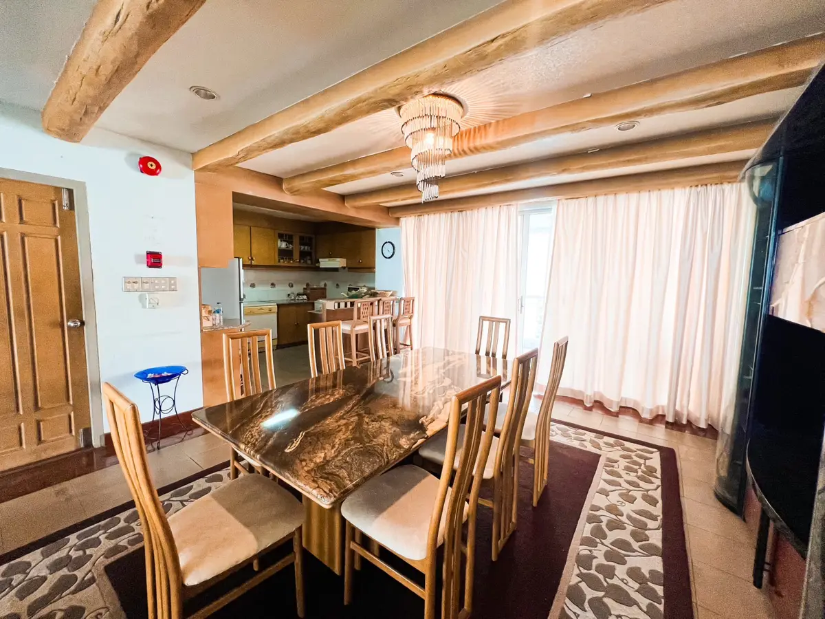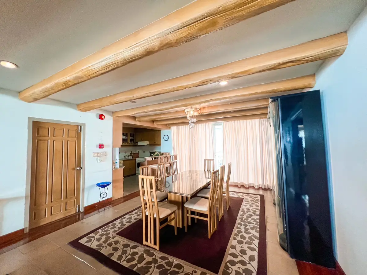 The beautiful three-bedroom unit, with a total living space of 373.11 square meters, features three bathrooms and is situated on the 3rd floor, offering stunning sea views of Pattaya Bay.