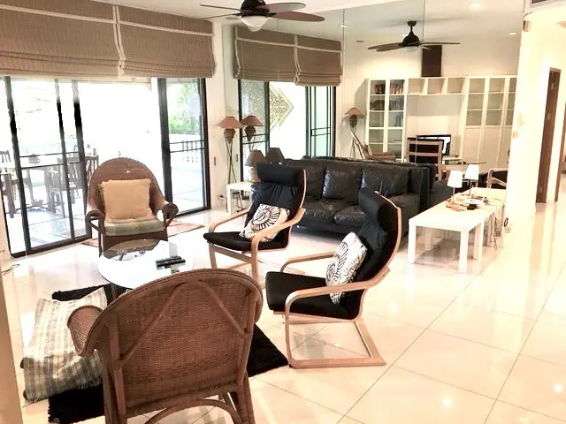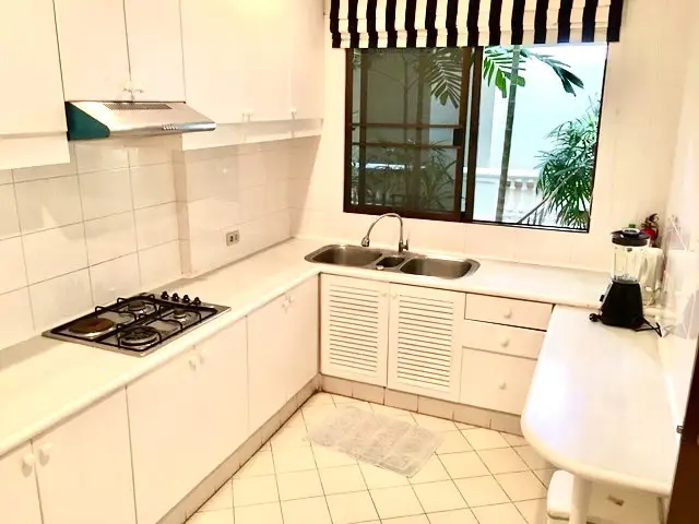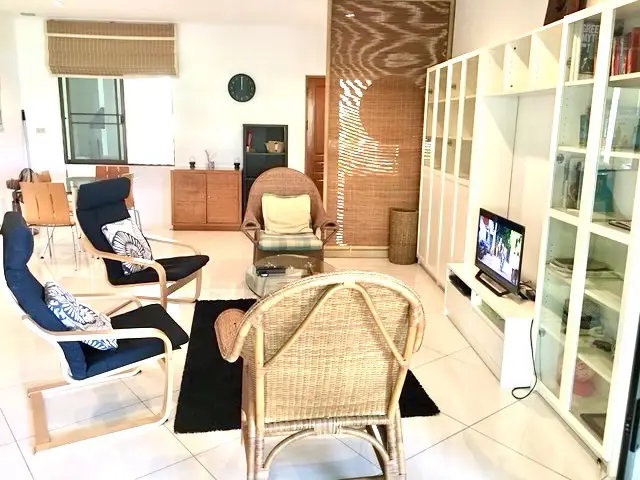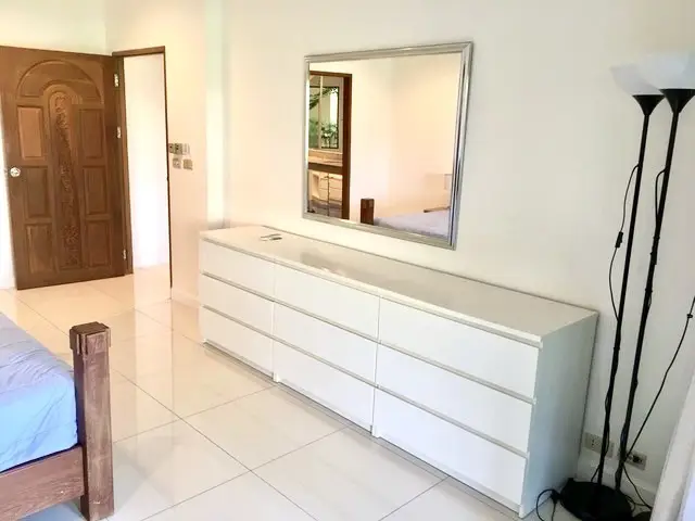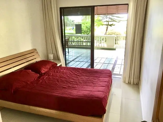 The apartment is located on the ground floor of Baan Somprasong, with an area of 180m2 which includes a large balcony giving direct access to the gardens, the pool and the beach. The apartment has a living room, a fitted western kitchen, two bedrooms and two bathrooms. It is furnished with hard furnishing. All rooms are air conditioned and mosquito screens are fitted to all doors and windows. A fibre optic internet line is fitted with fast internet and land line telephone. Has recently been repainted throughout and we have installed new curtains