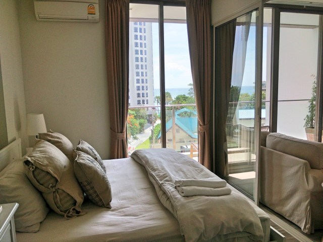 Beachfront 1 bedroom apartment on floor 4th , 1 bathroom, living area 42 sqm, Partial Sea View, West side, This unit is in Thai name