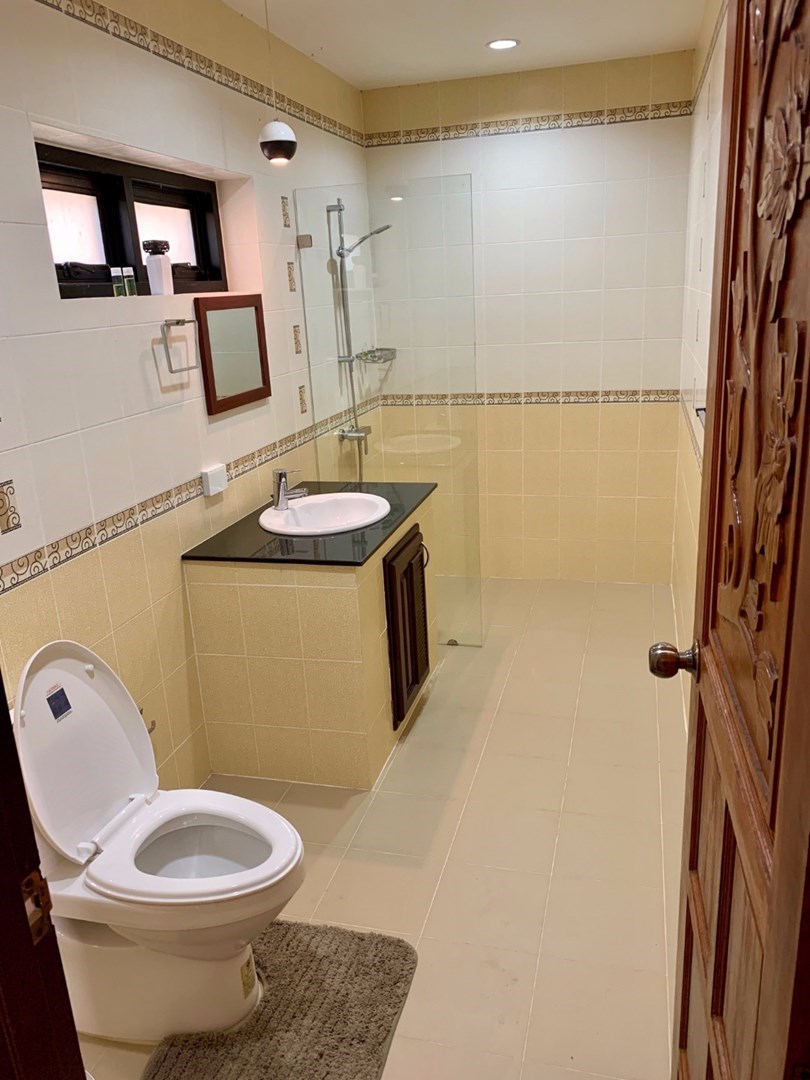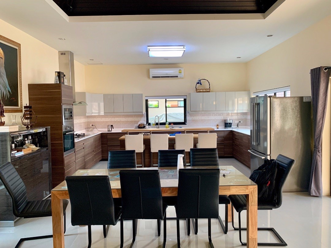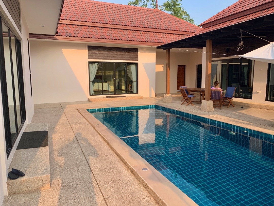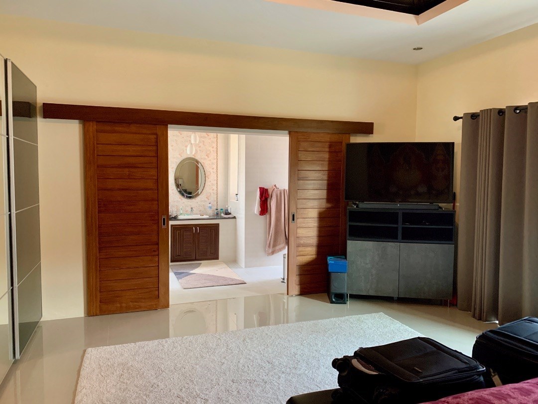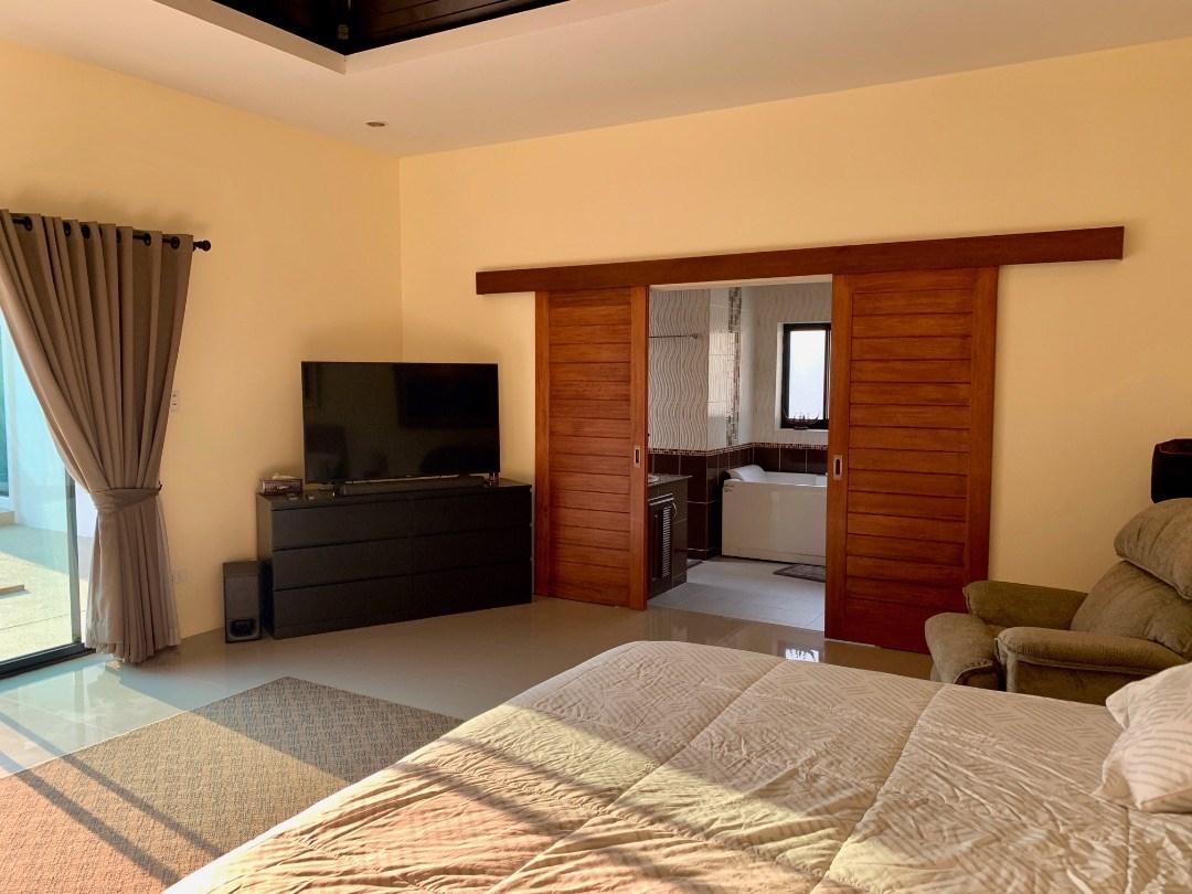This Ban Chang Pool Villa features unsurpassed workmanship and quality construction. The villa is a 180+ square meters, single-story, four-bedroom home. Master bedrooms are lavishly large and equipped with relaxing Jacuzzi tubs. Guest suites are separate and are ideal for offices and guest accommodations each with ensuite toilet and shower. The villa also features a gorgeous and private swimming pool, perfect for unwinding or entertaining friends. The 39 sqm swimming pool is surrounded by a beautiful, fully enclosed garden, and has its own serene outdoor gazebo.