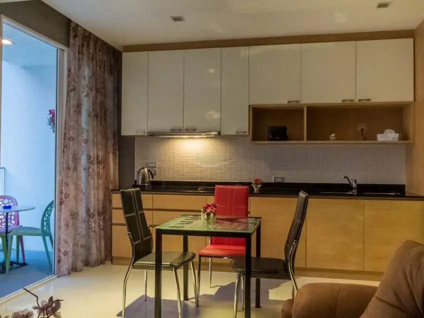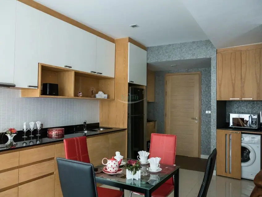 Beachfront Jomtien Residence This modern and spacious 1 bedroom apartment is 77 sq.m. on the 2nd floor, fully furnished will all equipment, ready to move in. There is a quality fitted European kitchen, a well sized living space with sofa, LCD TV, king sized bed and built-in closet. Air-conditioning throughout. Washing machine. Fitted bathroom with hot water shower. Providing high ceiling and large balcony.. This complex is a low-rise condominium project located at quiet and pristine beach just south of Pattaya and Jomtien. Two beautifully designed low rise buildings will be surrounded by a tropical garden. Features & Facilities: - Beachfront location - Underground parking - Beachfront swimming pool - Fitness center - CCTV - Lobby with professional management - 24 hours security - FREE WiFi internet Offered for Rent with a minimum 6 month contract at 22,000 Baht and with 12 month contract at 20,000 Baht per month.Facilities